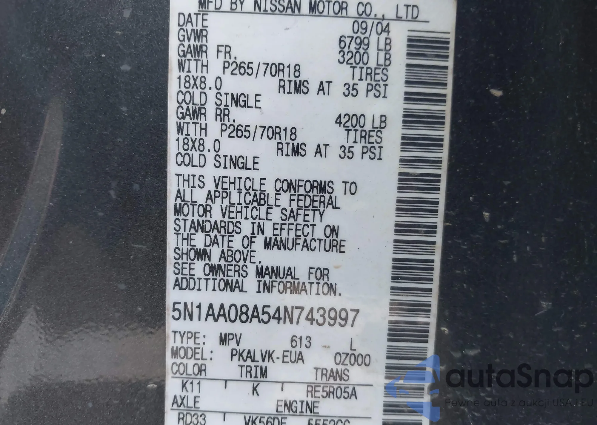 • VIN 5N1AA08A54N743997
