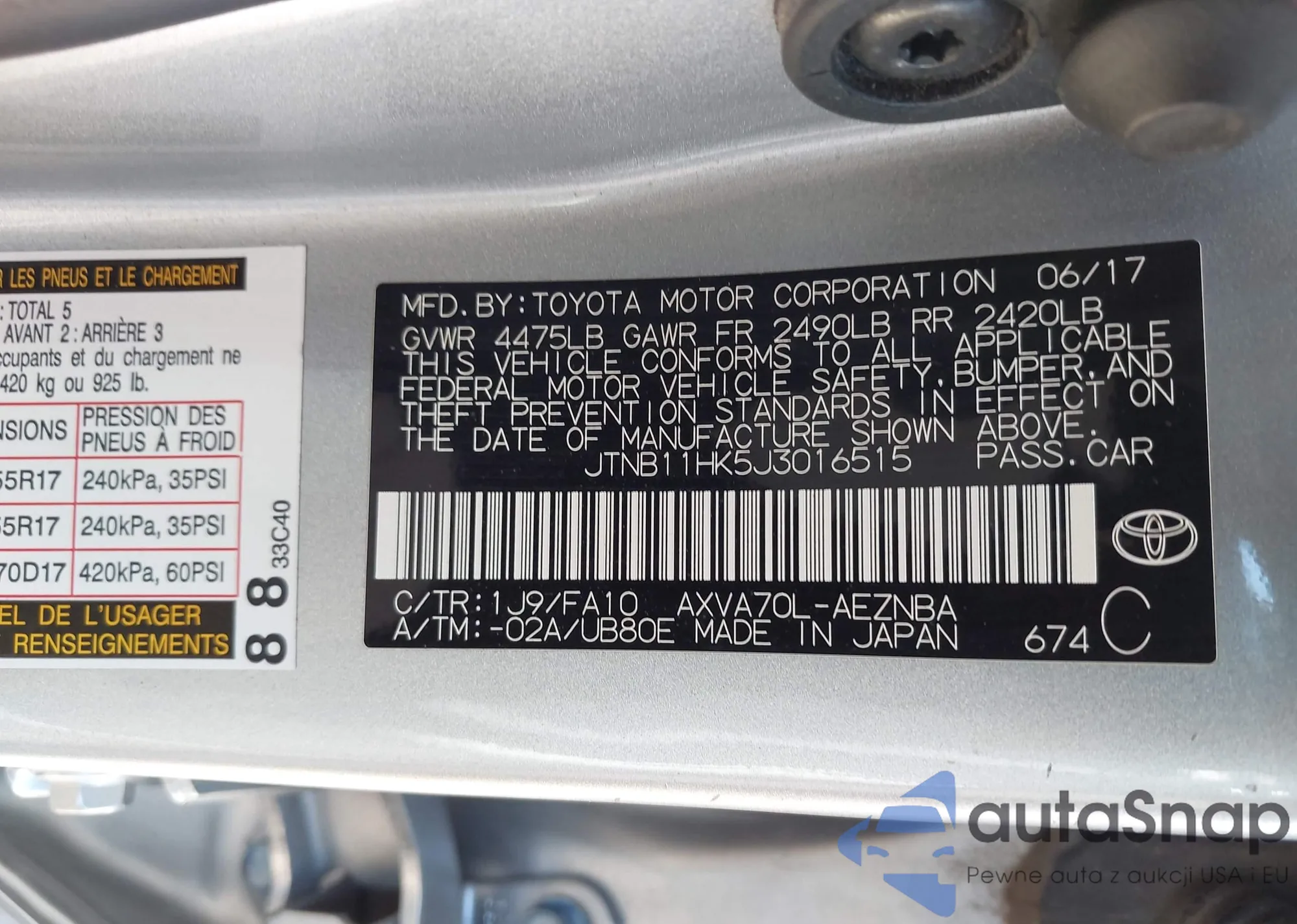 • VIN 4T1BF1FK9HU757548