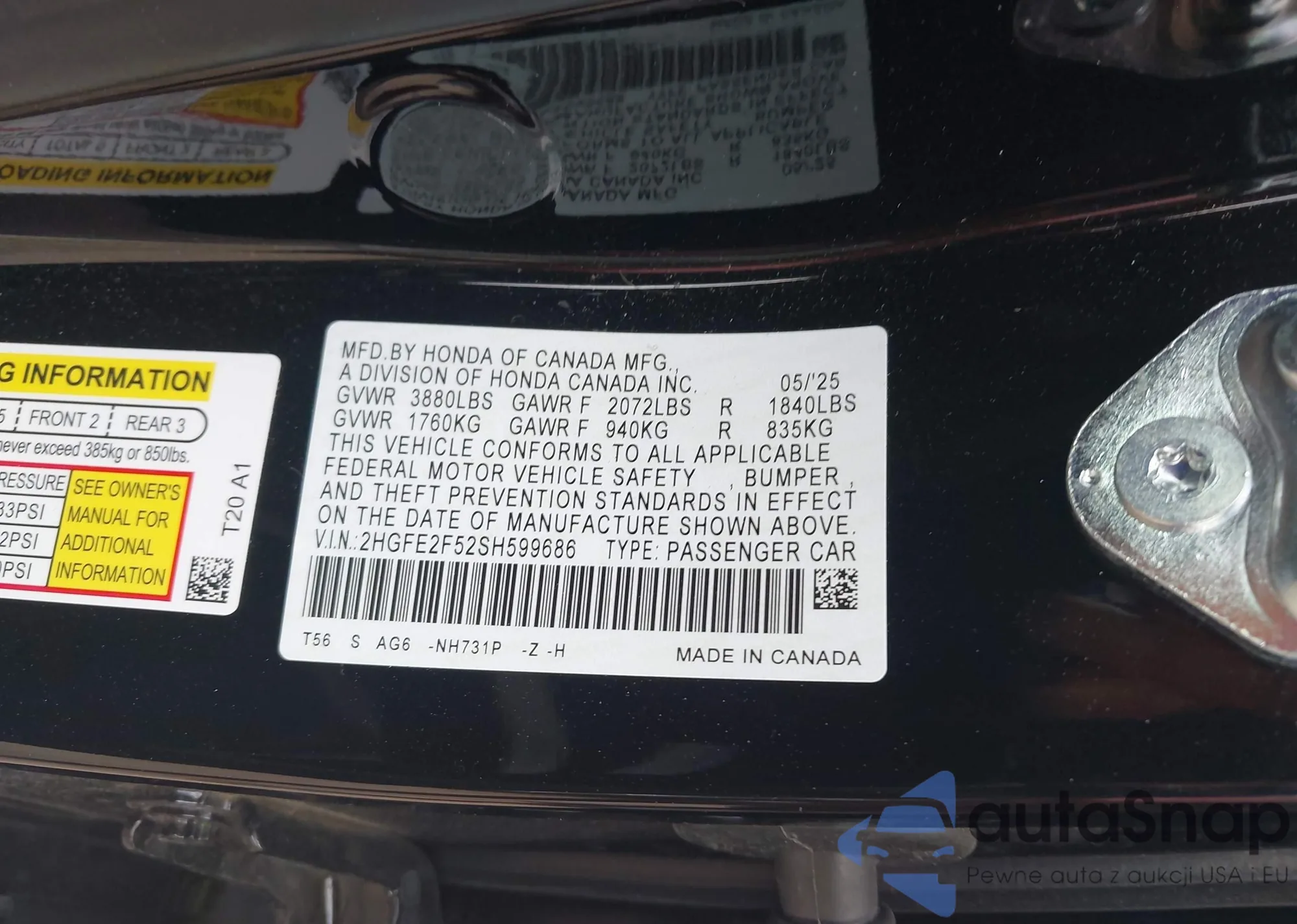 LOT: 42760388 VIN: 2HGFE2F52SH599686