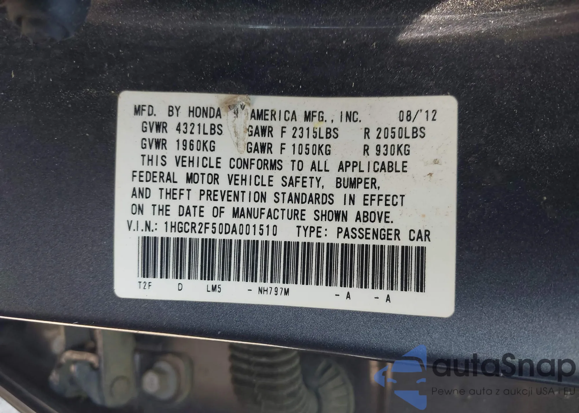 LOT: 42561307 VIN: 1HGES16315L025827
