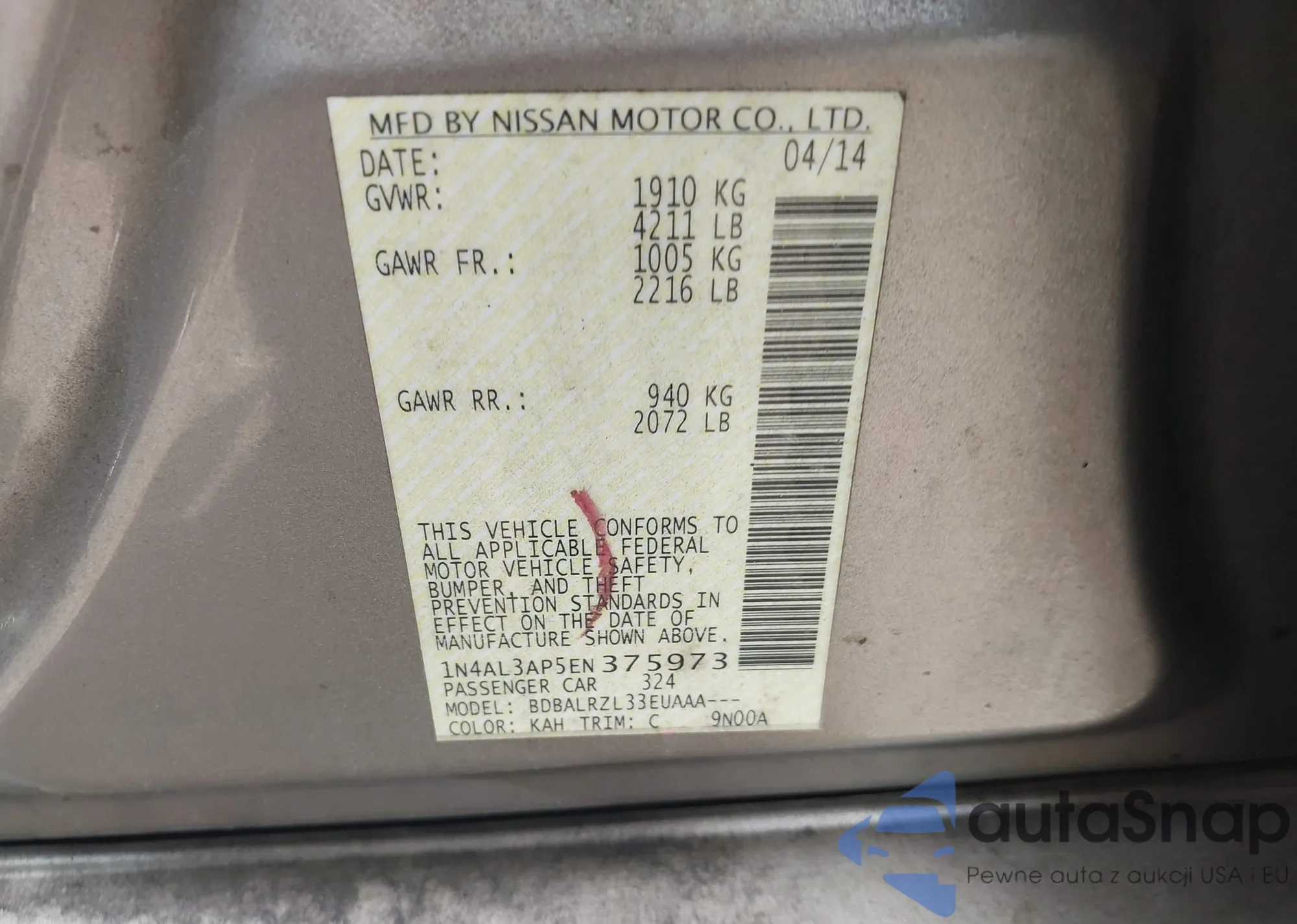 LOT: 42345168 VIN: 1N4AL3AP5EN375973