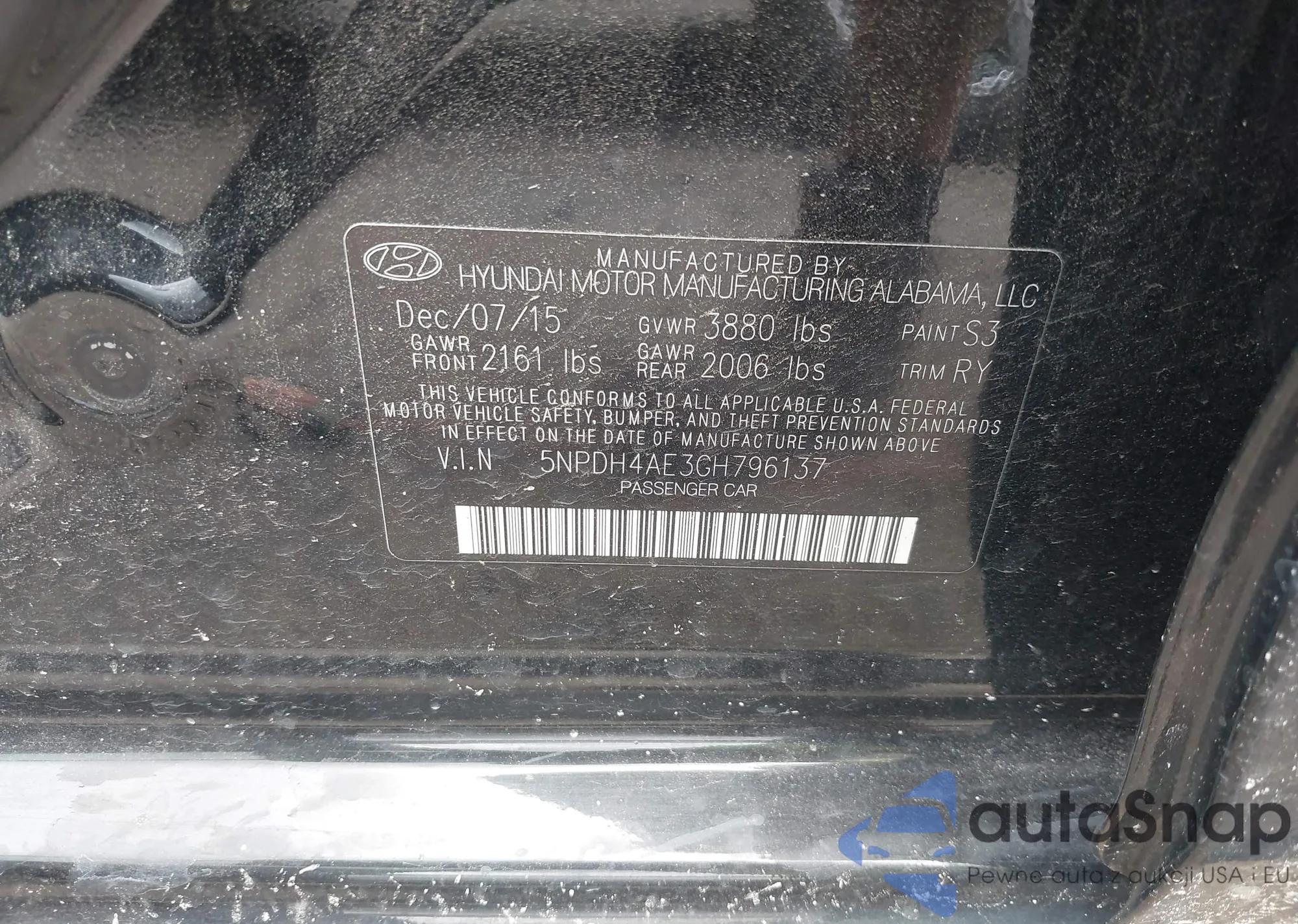 LOT: 42633341 VIN: 5NPDH4AE3GH796137