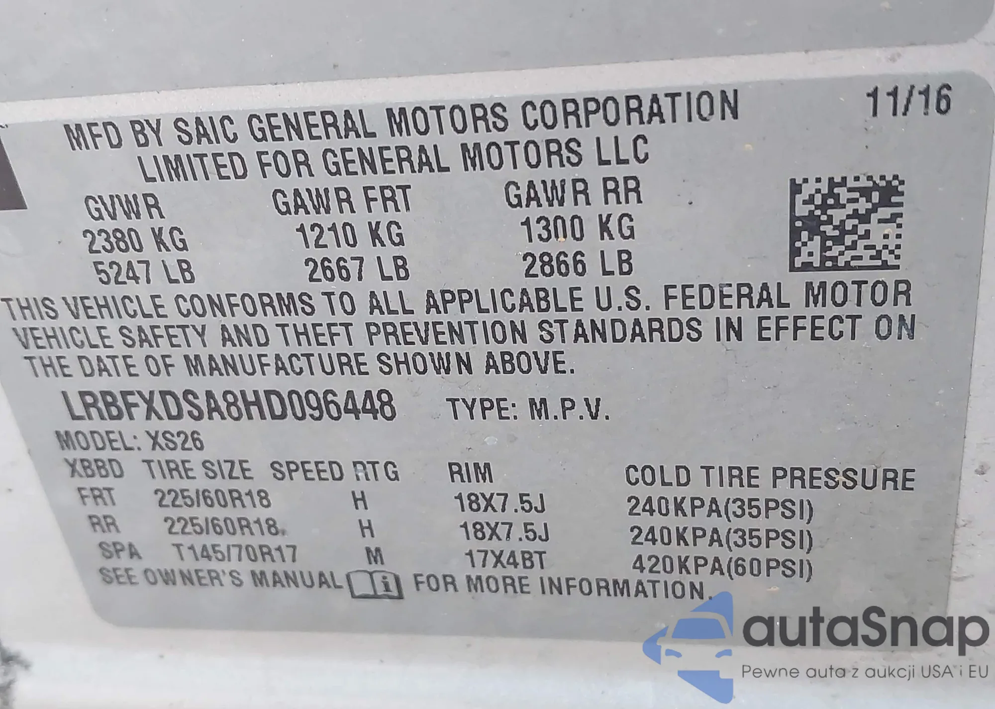 • VIN LRBFXDSA8HD096448