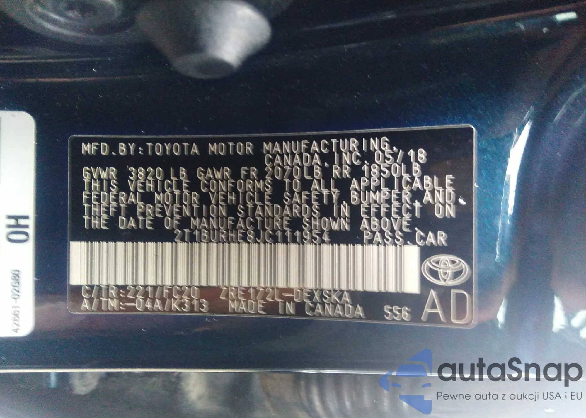 LOT: 38735611 VIN: 2T1BURHE8JC111954