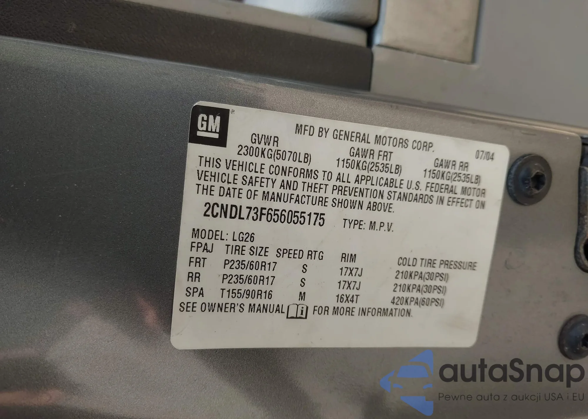 LOT: 42450434 VIN: 2CNDL73F656055175