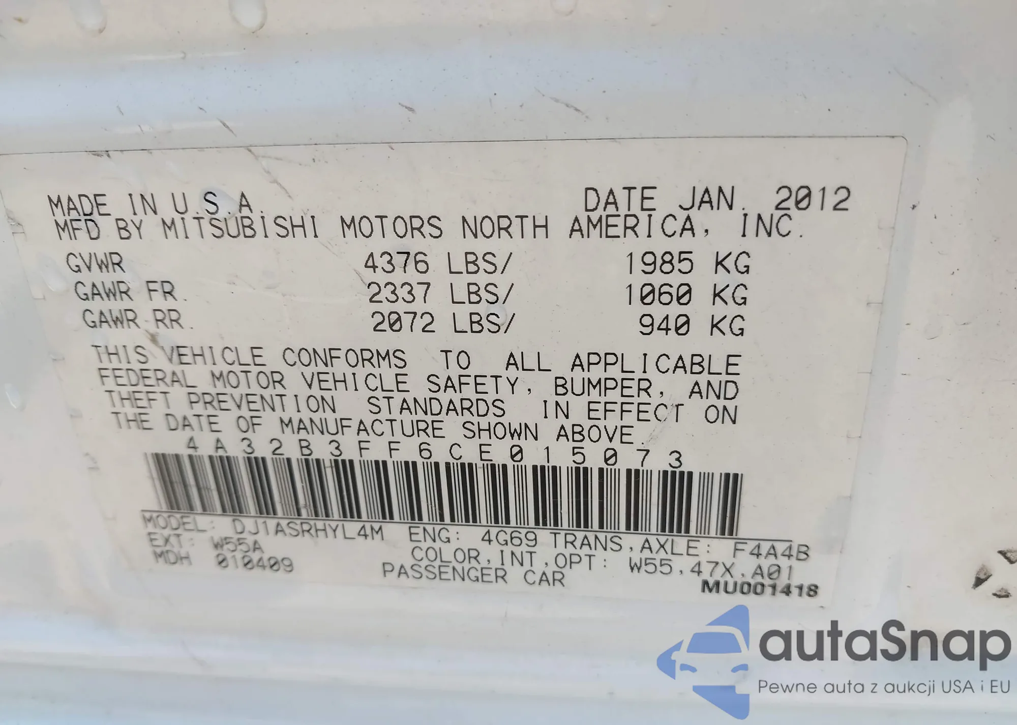 • VIN 4A32B3FF6CE015073