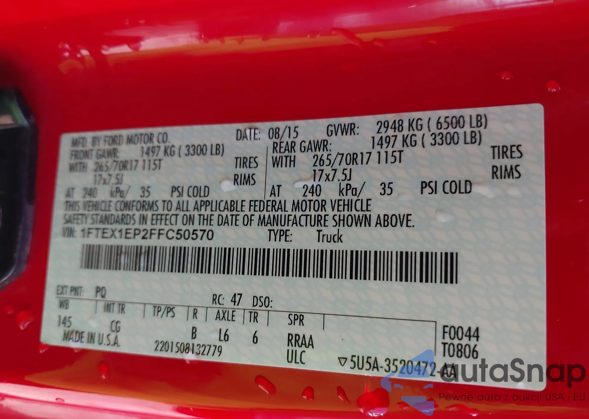 LOT: 42466820 VIN: 1FTEX1EP2FFC50570