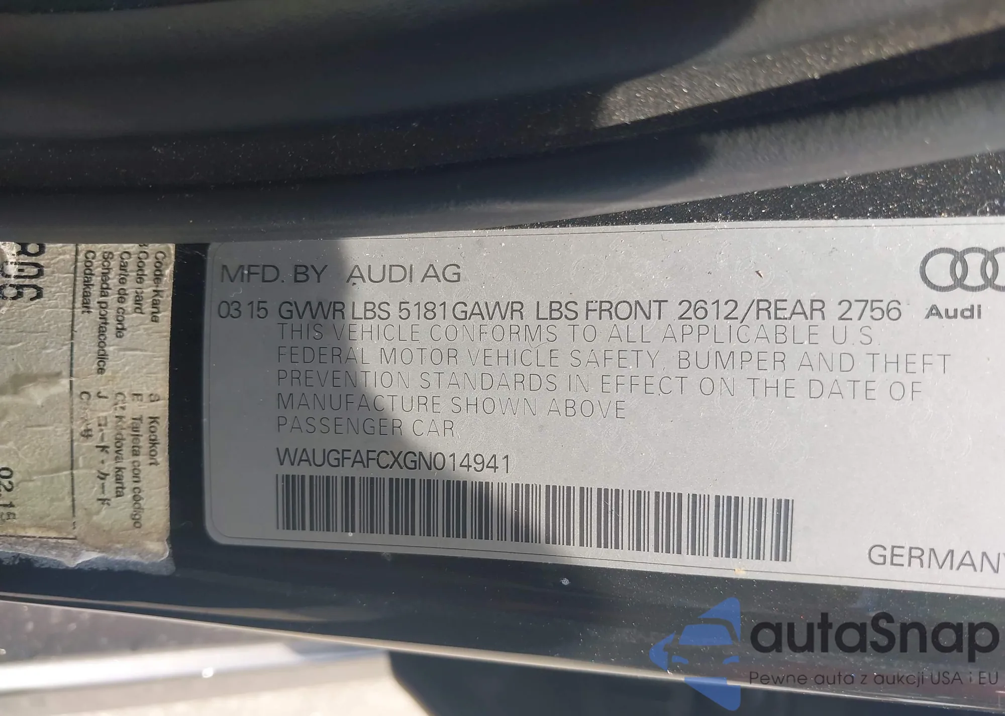 • VIN WAUGFAFCXGN014941