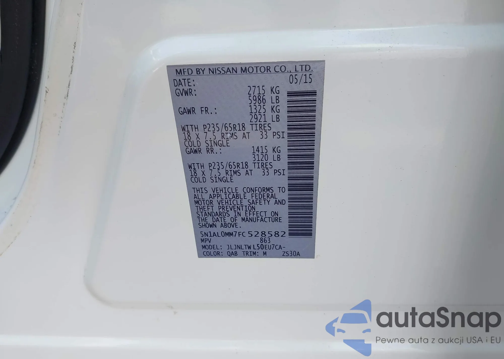 • VIN 5N1AL0MM7FC528582