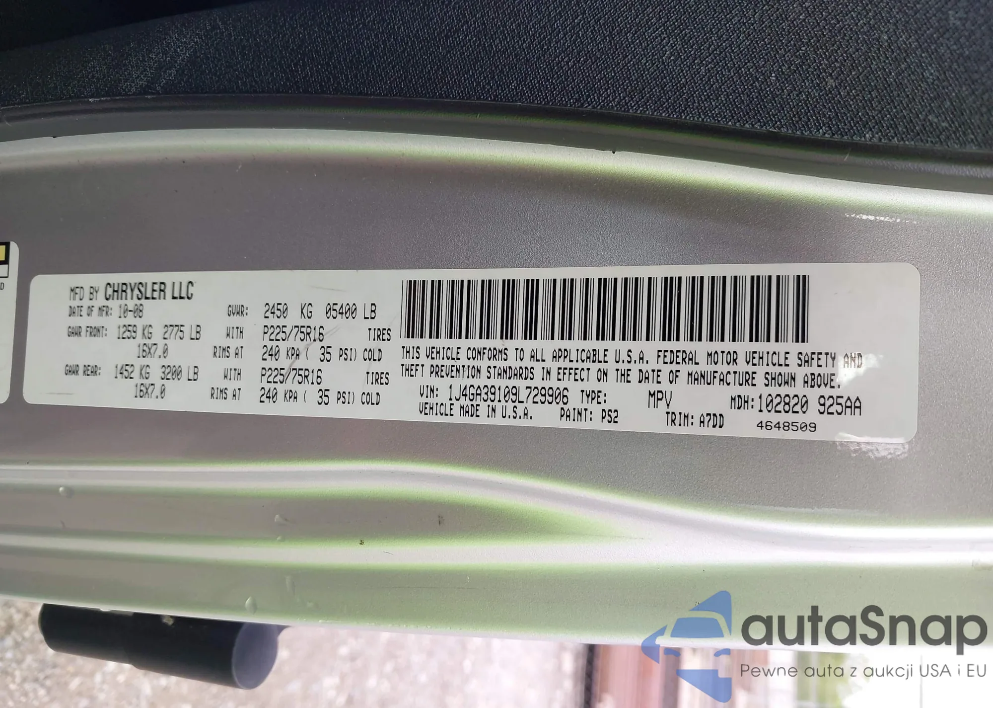 LOT: 42783408 VIN: 1J4GA39109L729906