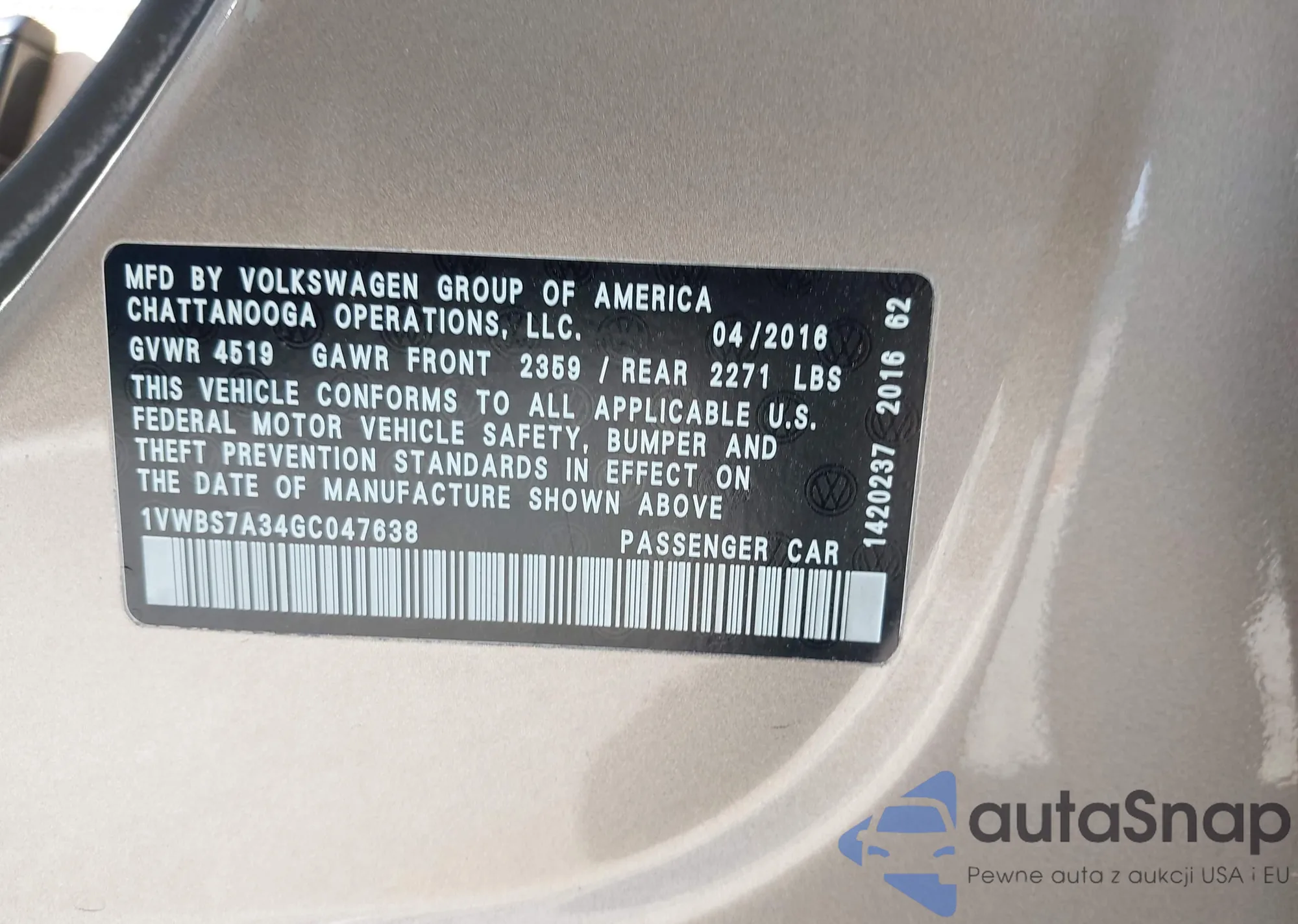 • VIN 3VW5T7AU7HM065344