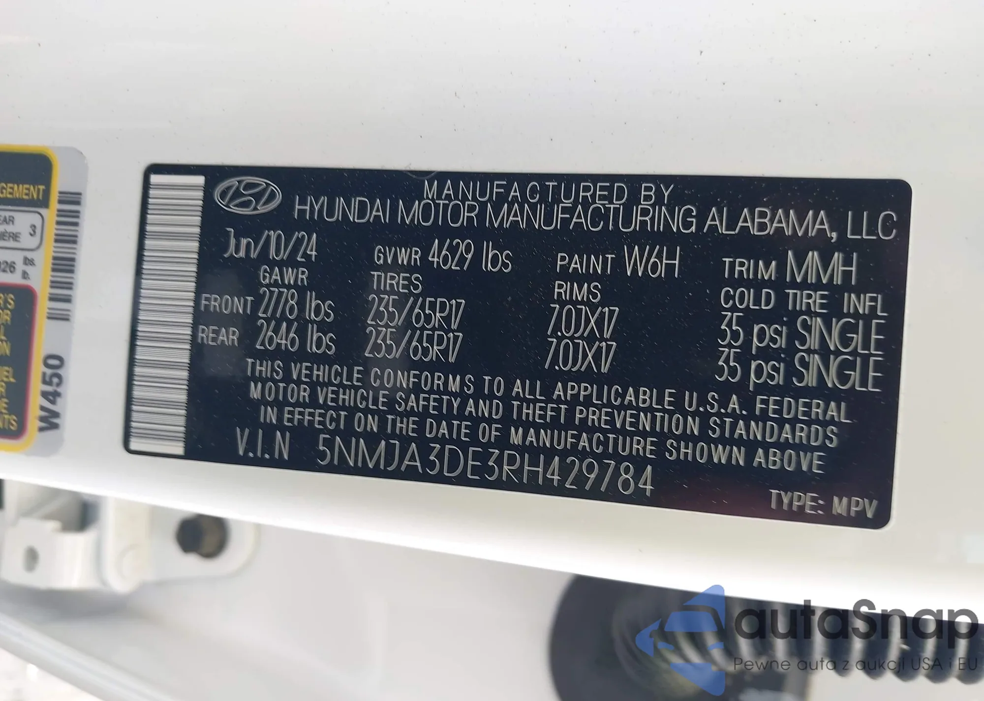 • VIN 5NMJA3DE3RH429784
