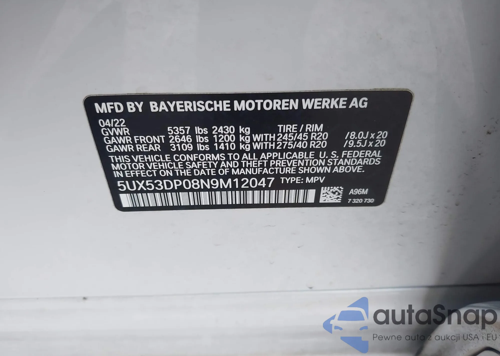 LOT: 42168388 VIN: SAJWA0E78D8S65741