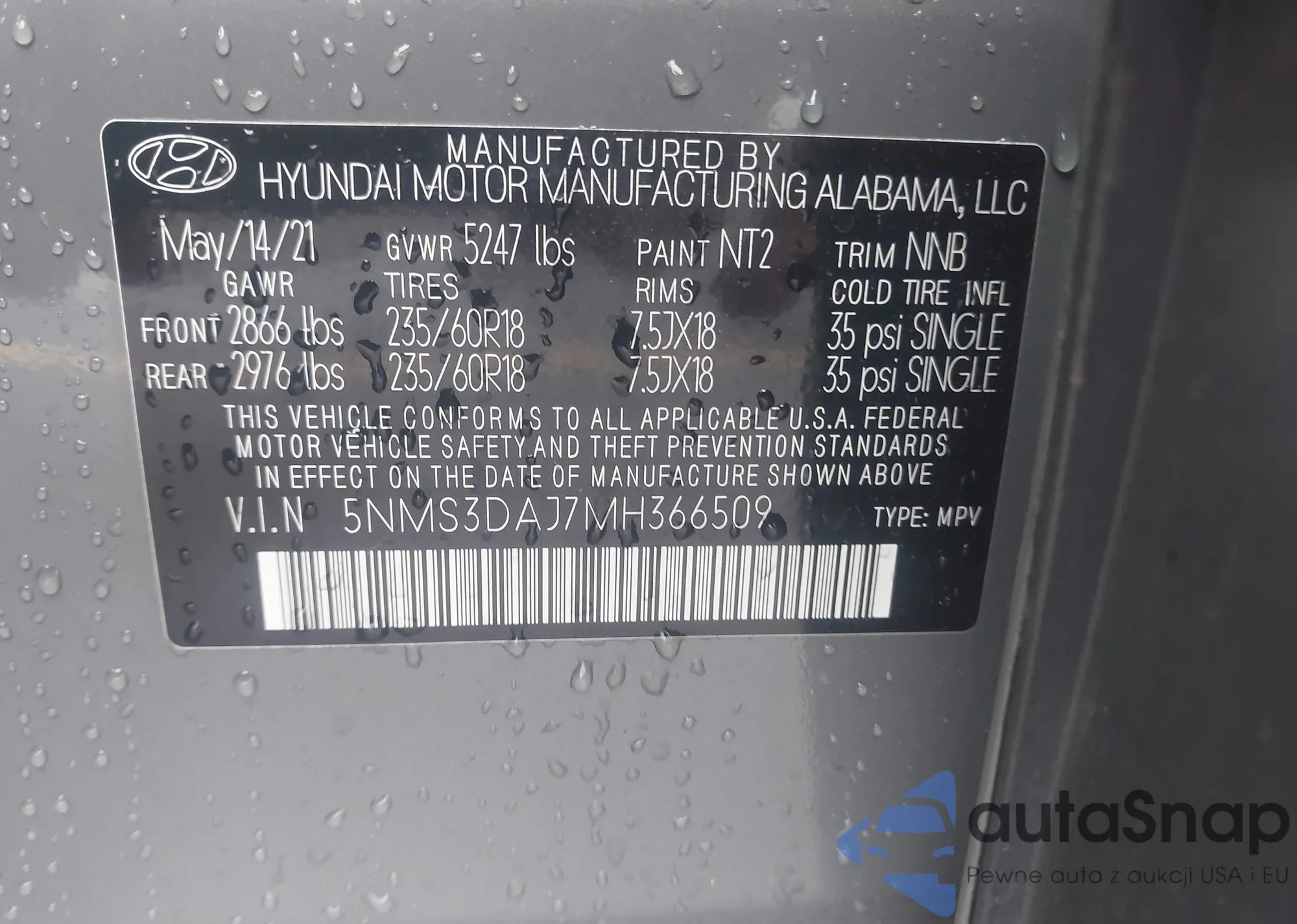 • VIN 5NMS3DAJ7MH366509