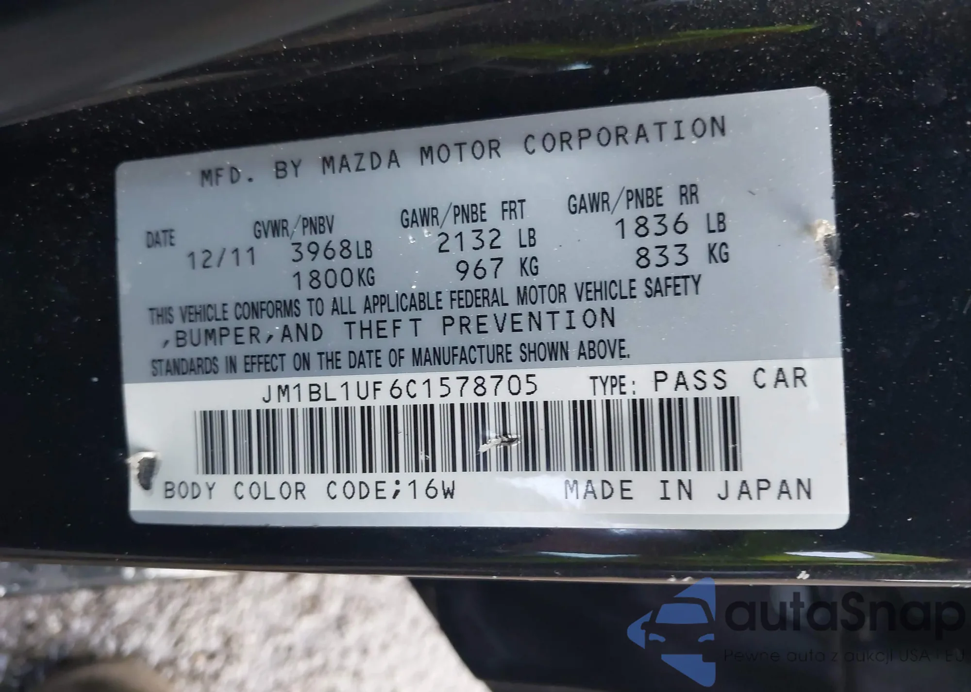 LOT: 42595164 VIN: JM1BL1UF6C1578705