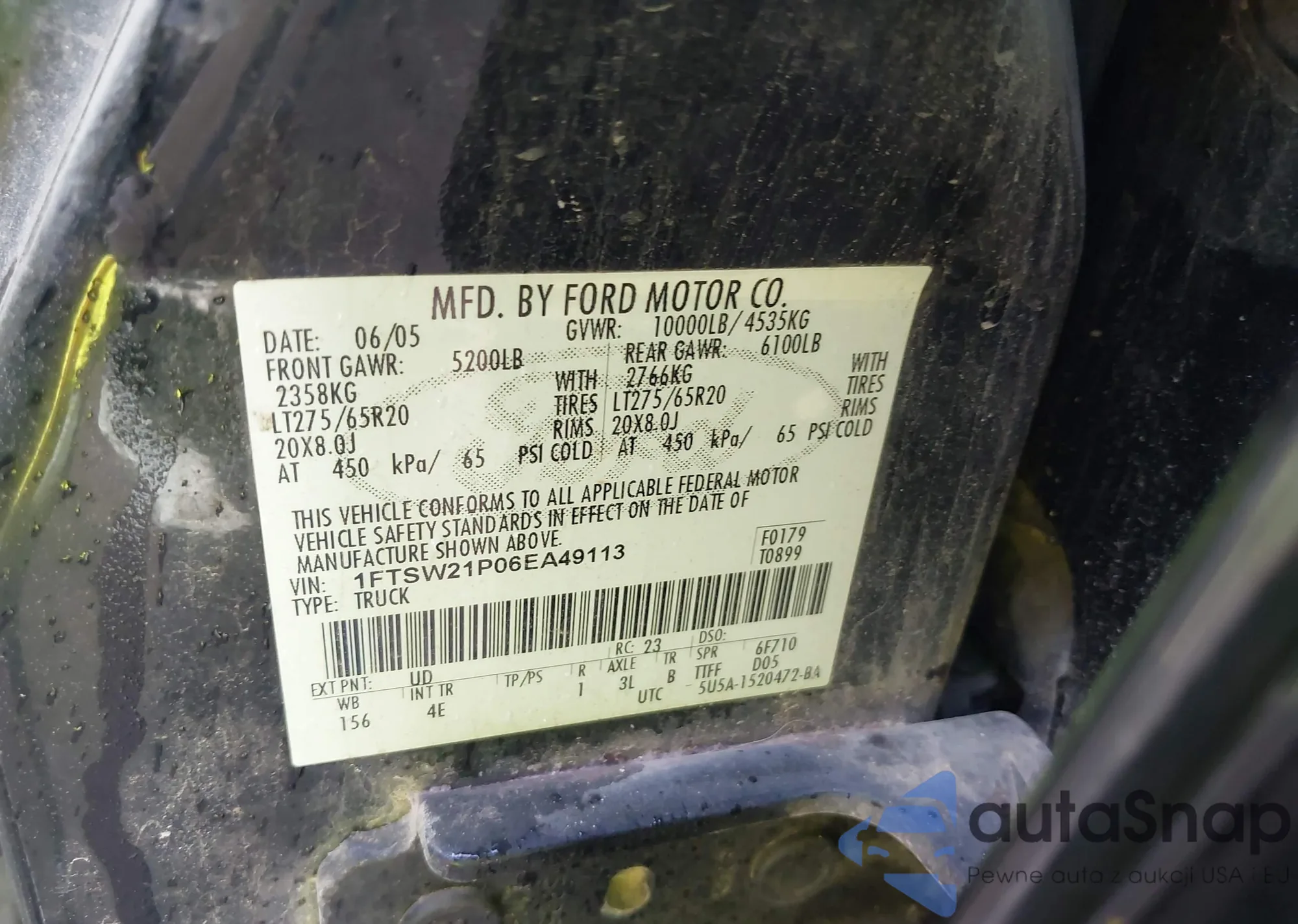 LOT: 42601741 VIN: 1FTSW21P06EA49113