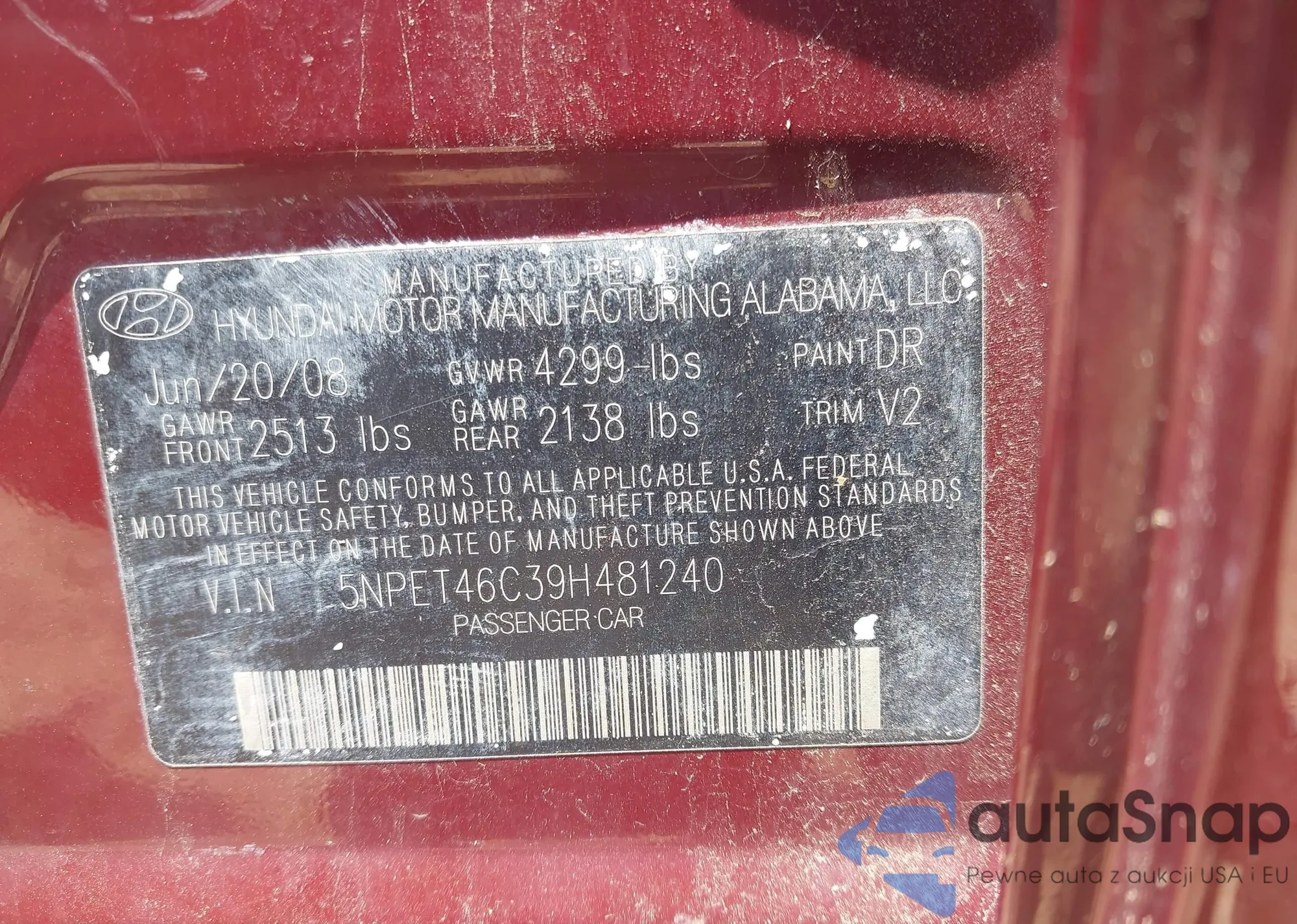 LOT: 42685406 VIN: 19UUA76578A001339