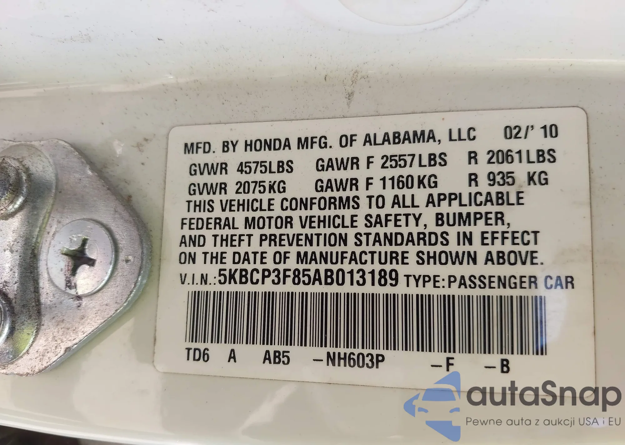 • VIN 1HGCR2F57DA084918