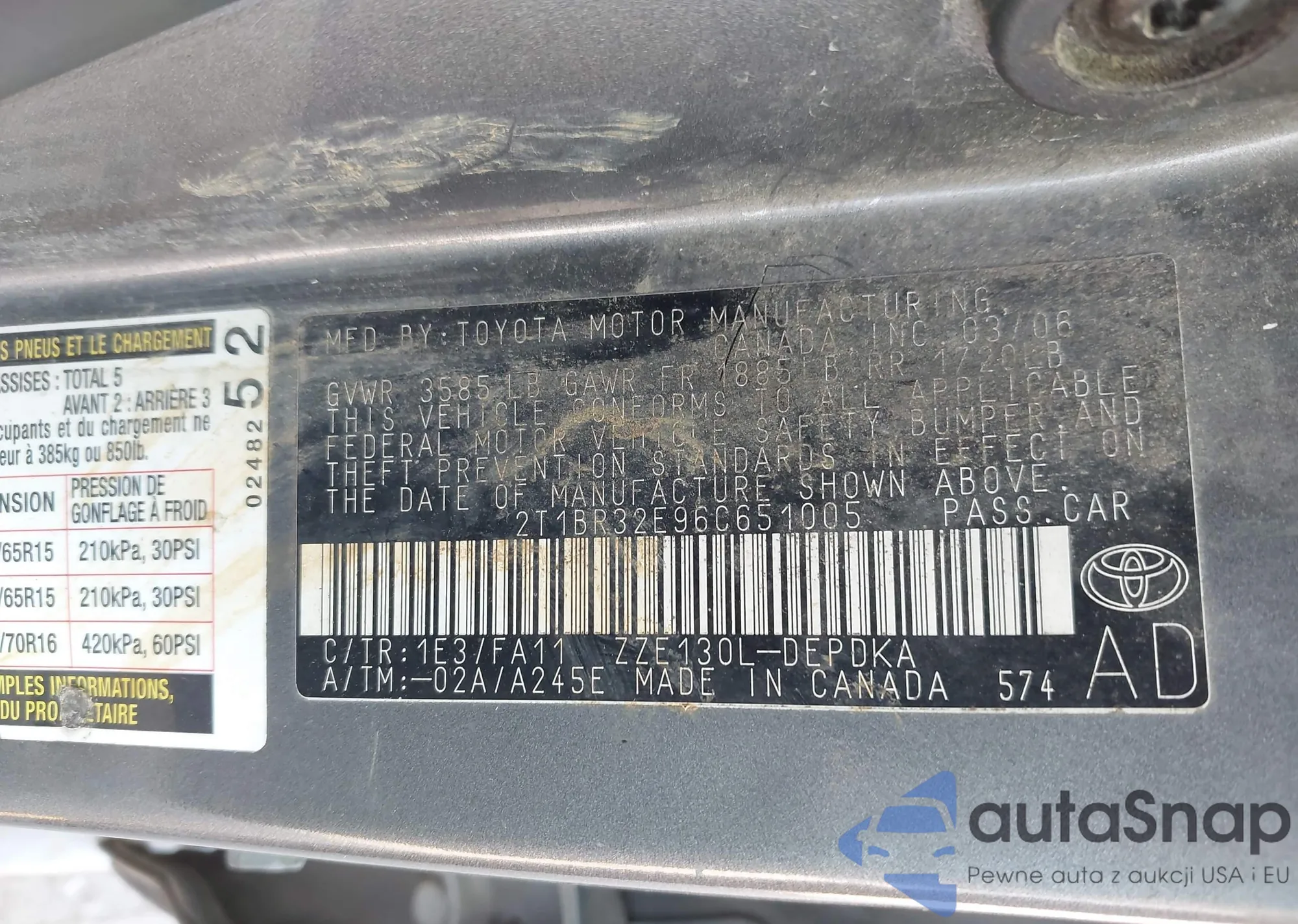• VIN 2T1BR32E96C651005