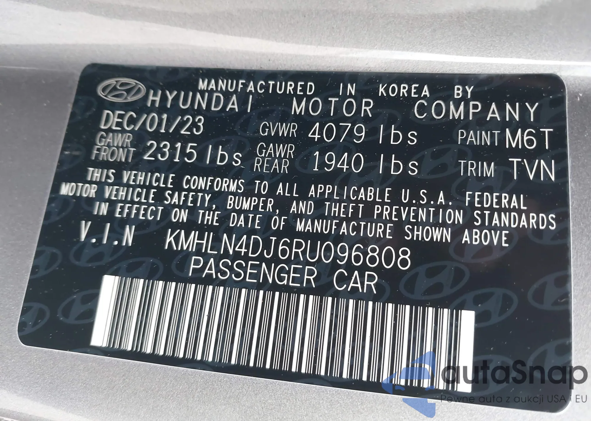 • VIN KMHLN4DJ6RU096808