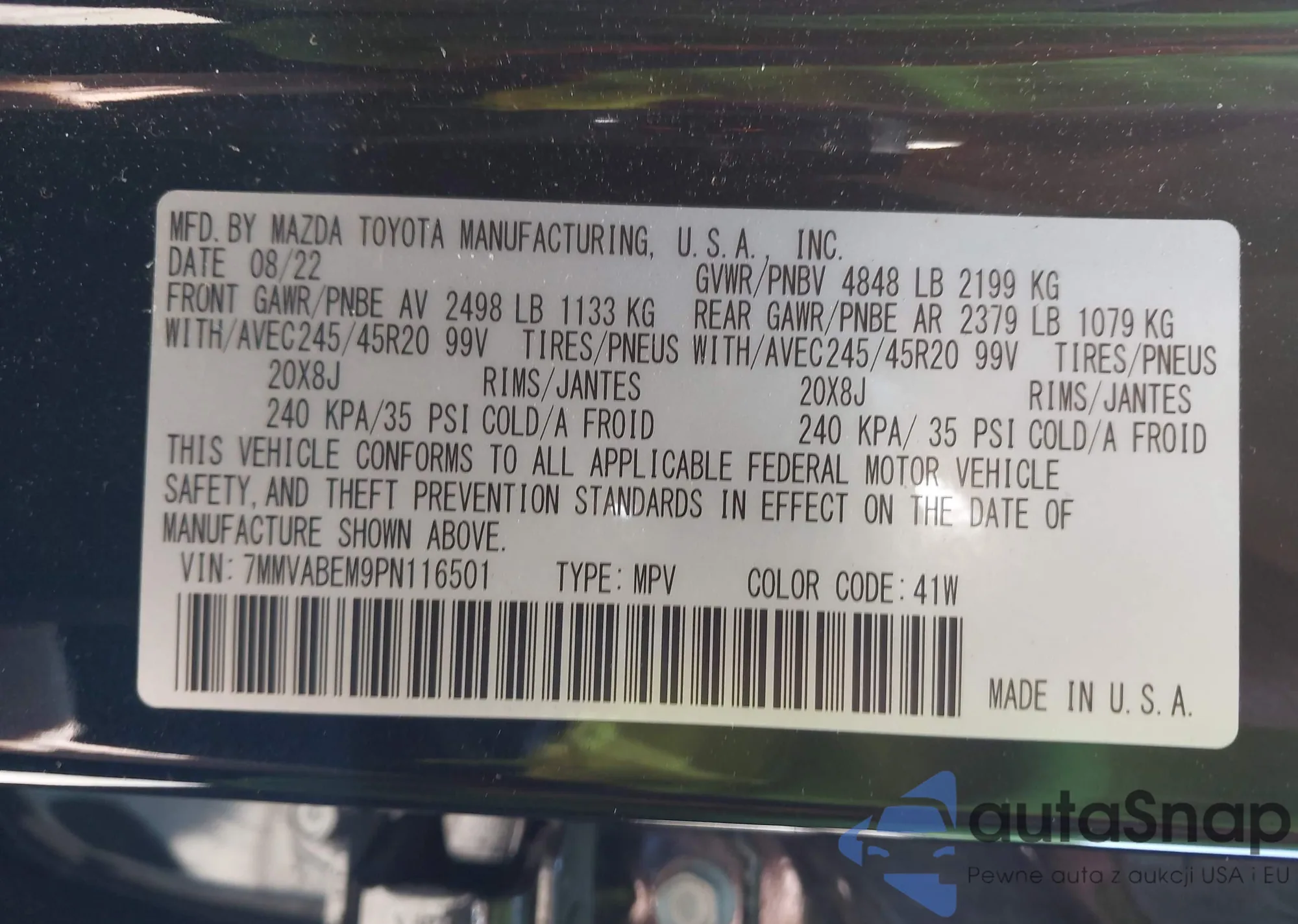 • VIN 1N4BL4DV9MN348908
