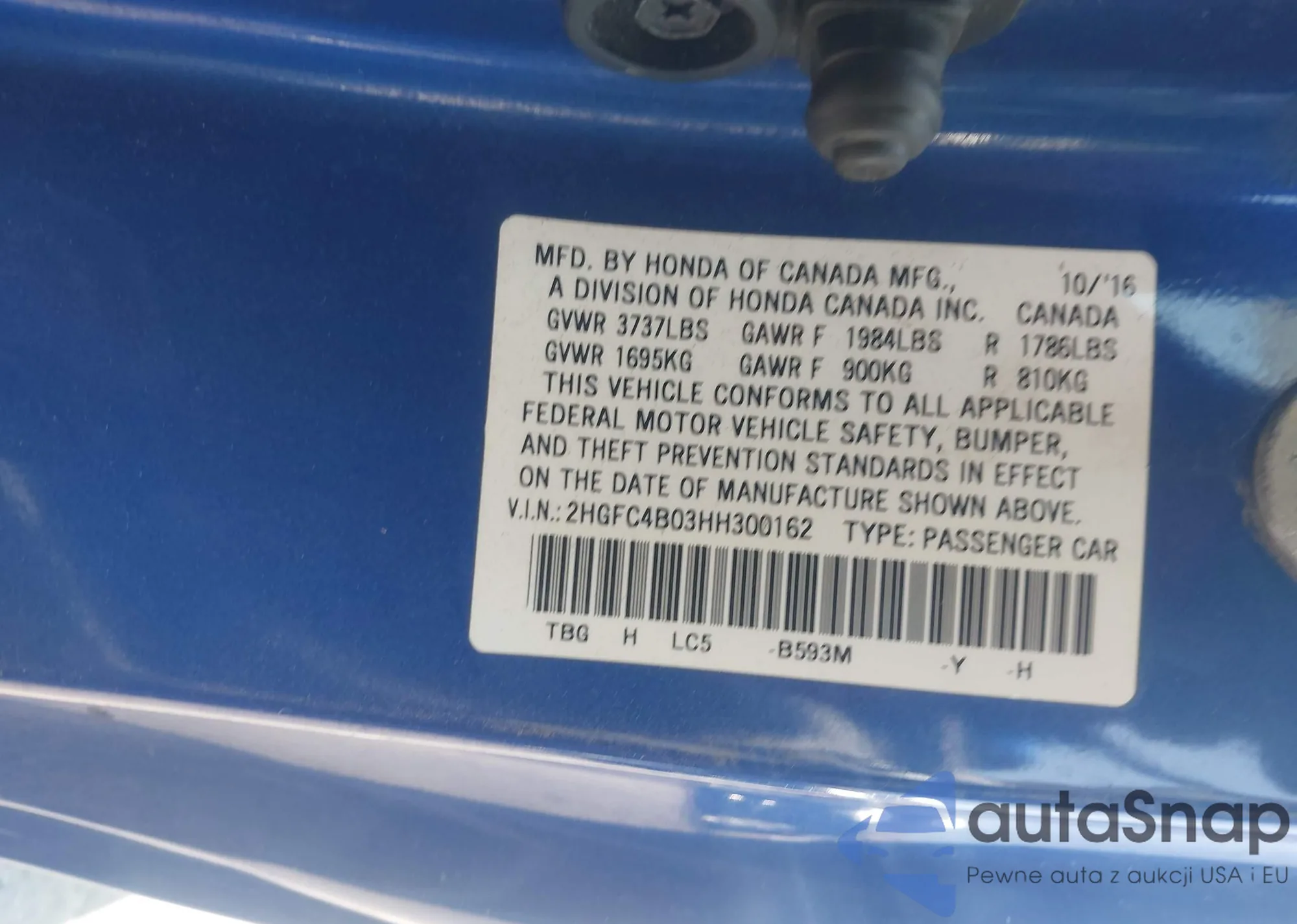 • VIN 2HGFC4B03HH300162