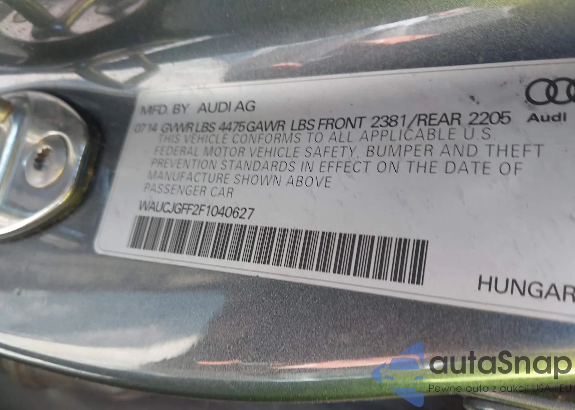 LOT: 42679907 VIN: WAUCJGFF2F1040627