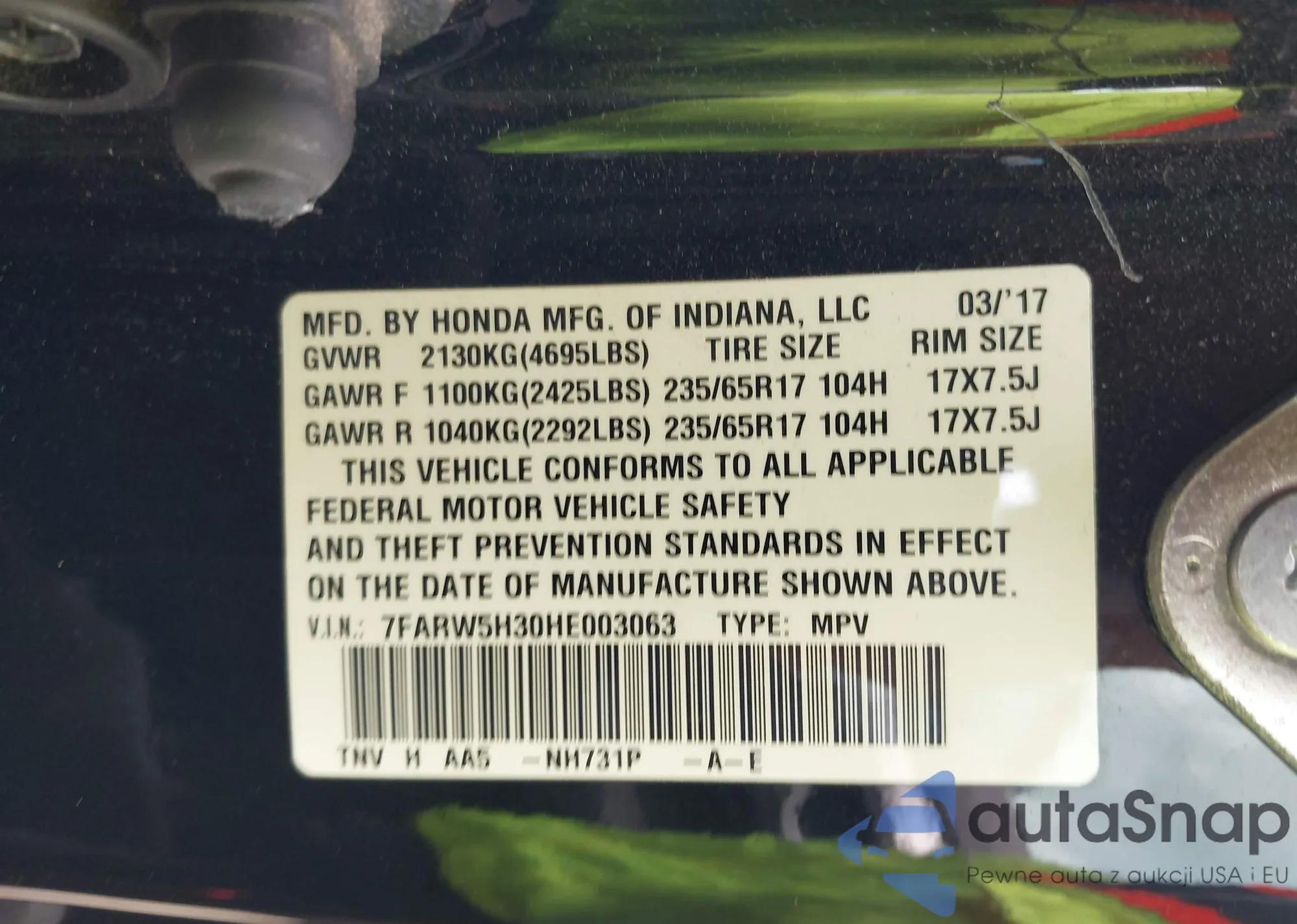 • VIN 7FARW5H30HE003063