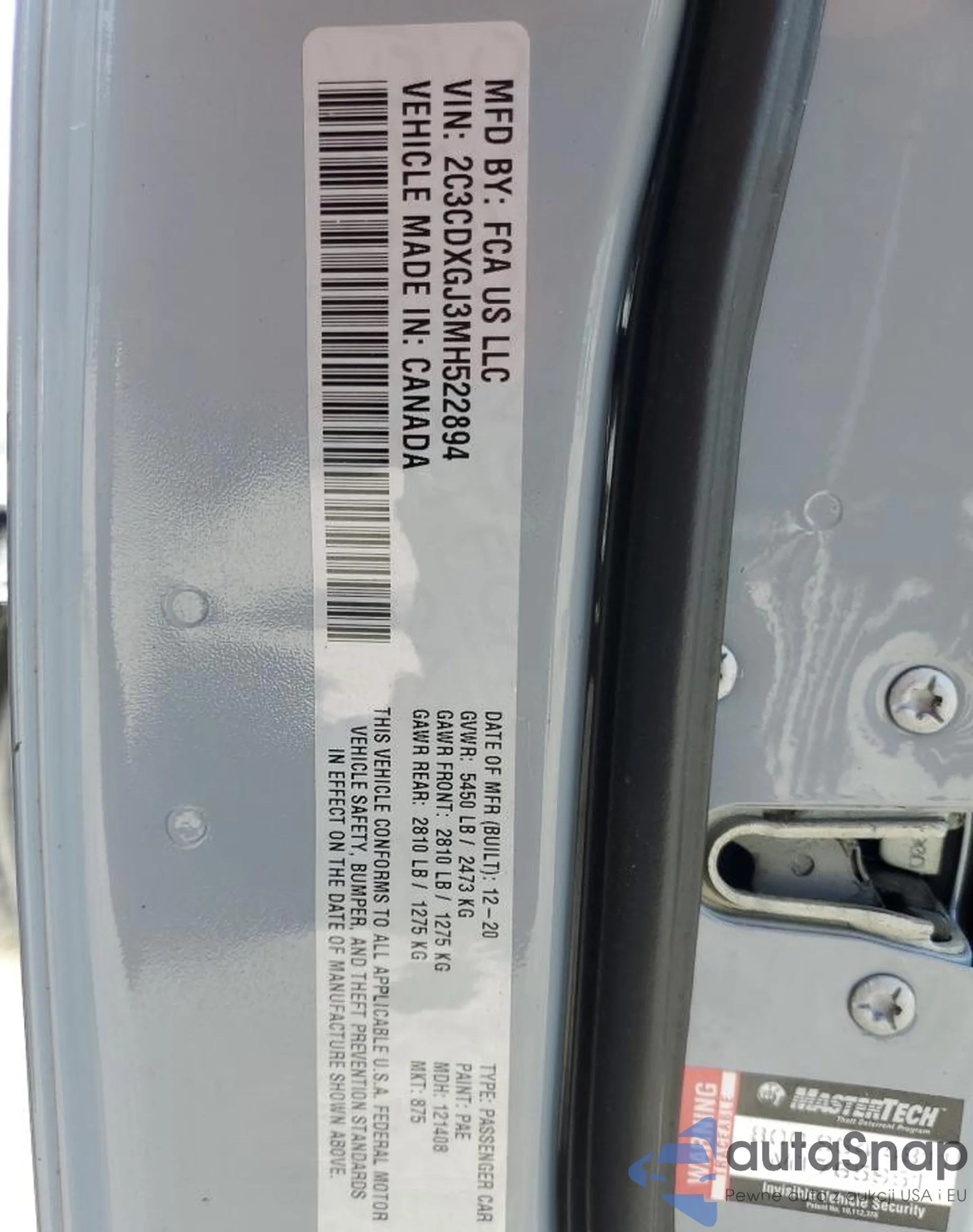 • VIN 2C3CDXGJ3MH522894