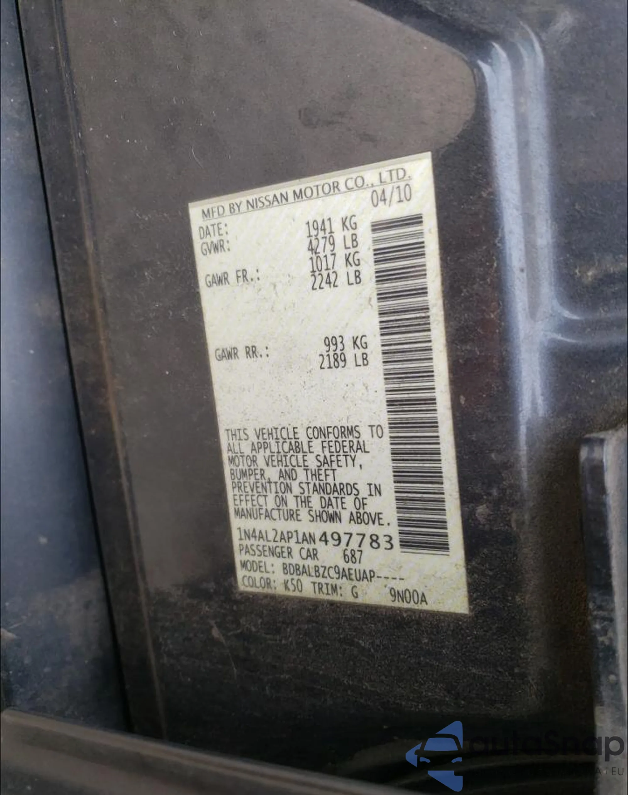• VIN 1N4AL2AP1AN497783