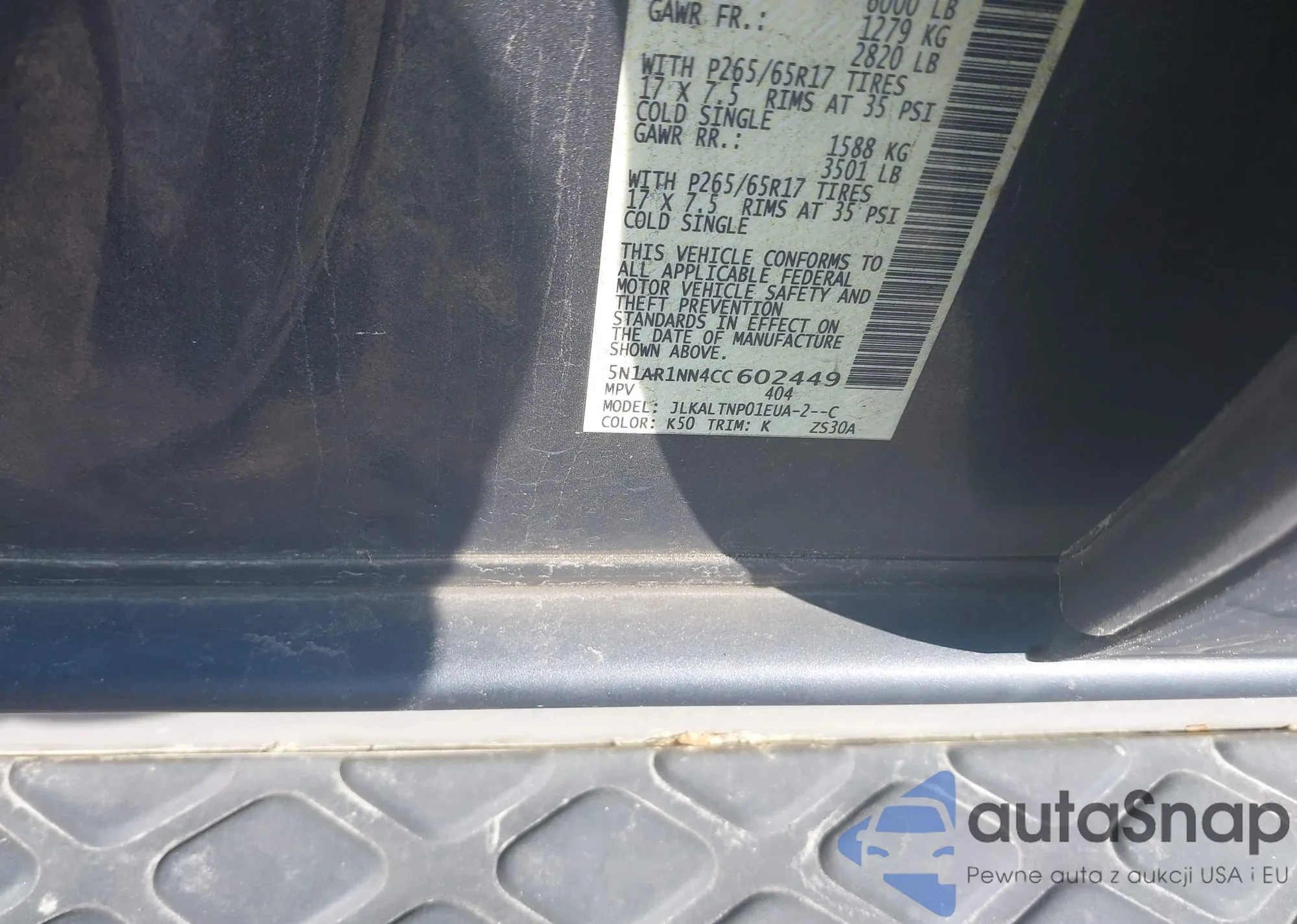 • VIN 5N1AR1NN4CC602449