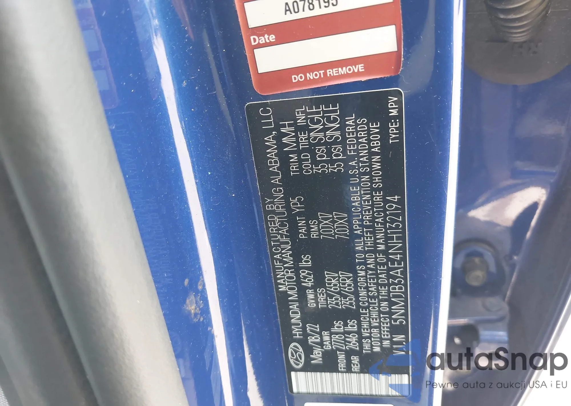 • VIN 5NMJB3AE4NH132194
