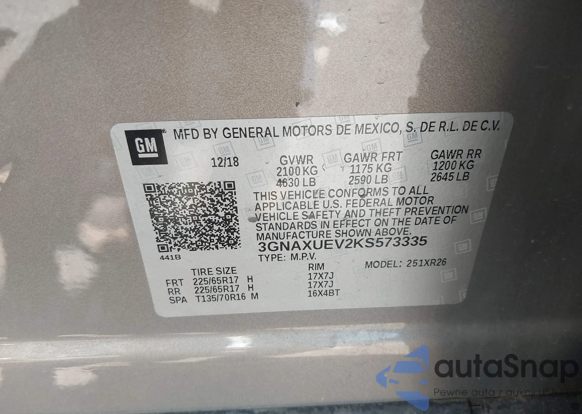 • VIN 3GNAXUEV2KS573335