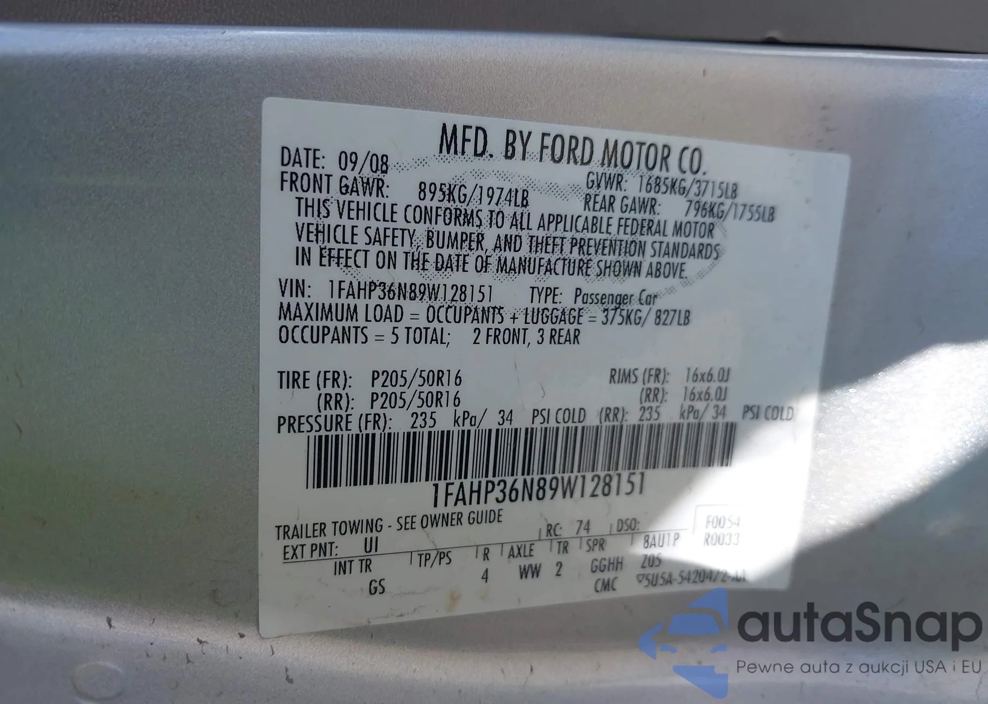 LOT: 42725999 VIN: 1FAHP36N89W128151
