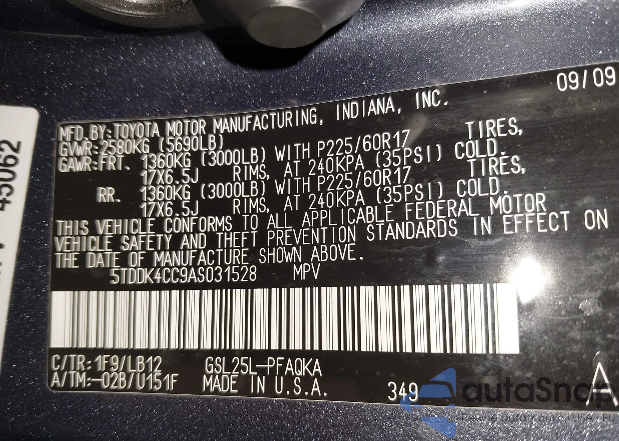 • VIN 5TDDK4CC9AS031528