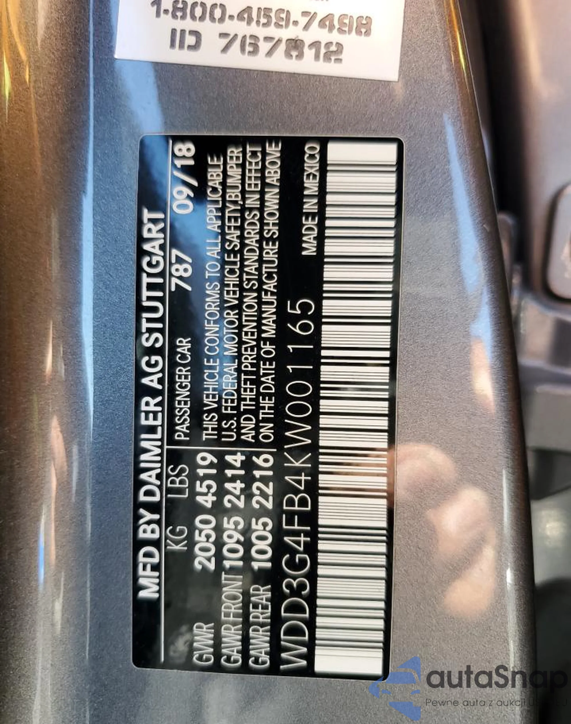 • VIN WDD3G4FB4KW001165