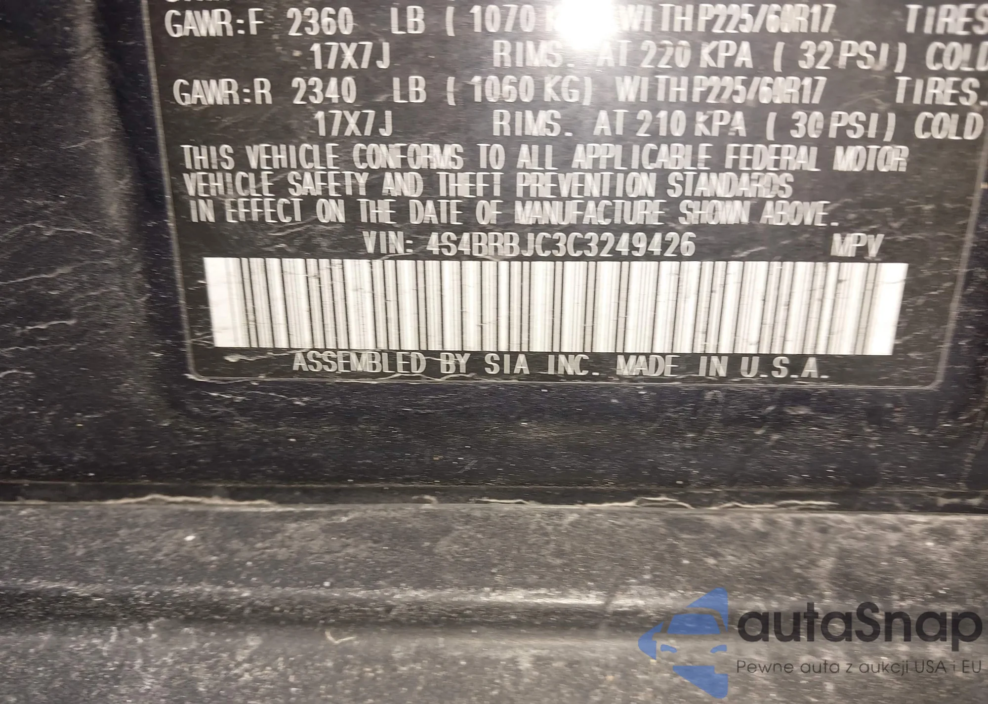 LOT: 41236657 VIN: 4S4BRBJC3C3249426