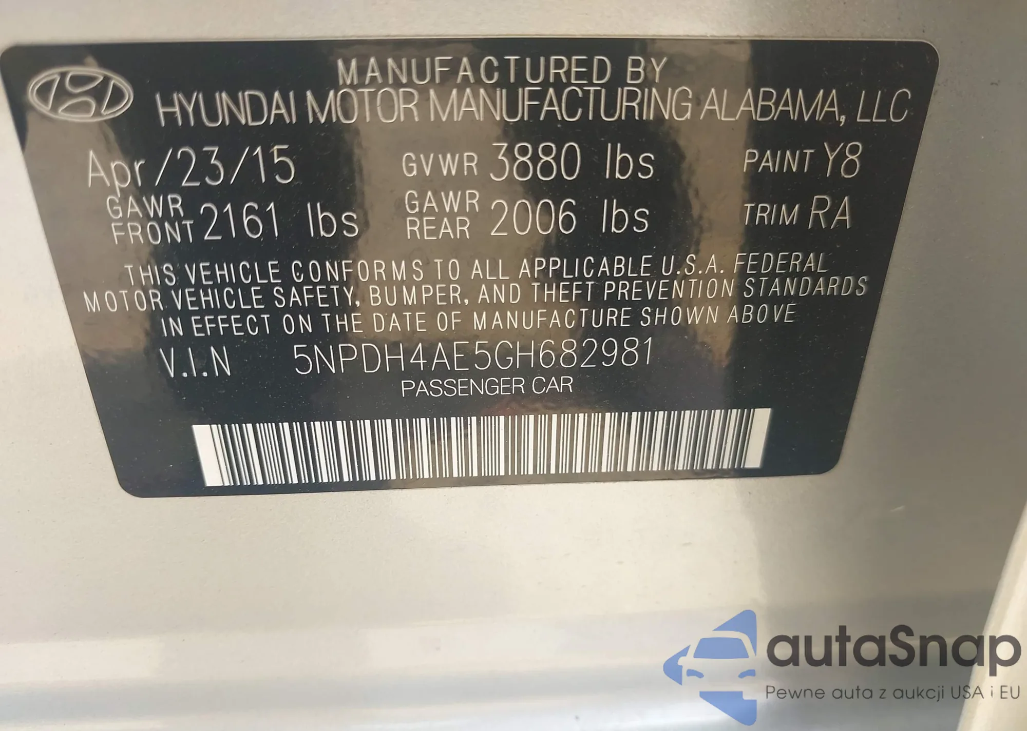 LOT: 42413057 VIN: 5NPDH4AE5GH682981