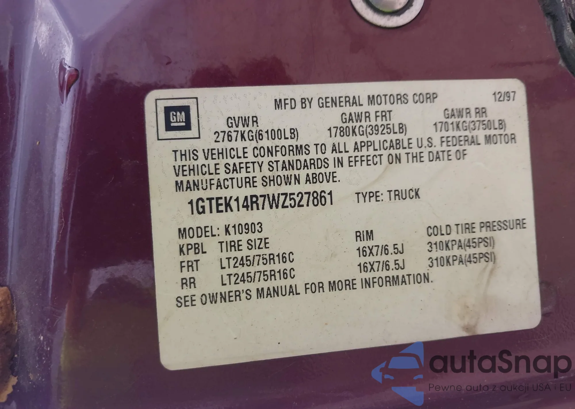 • VIN 1GTEK14R7WZ527861