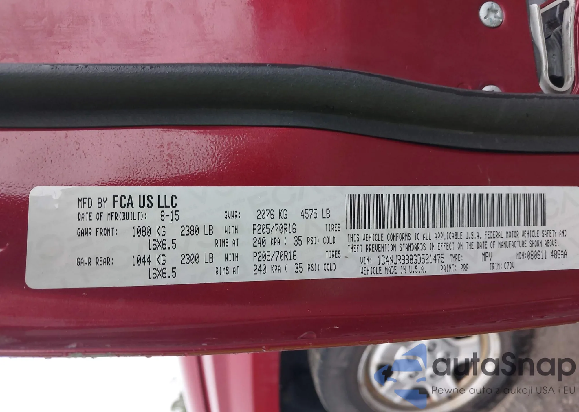 • VIN 1C4NJRBB8GD521475