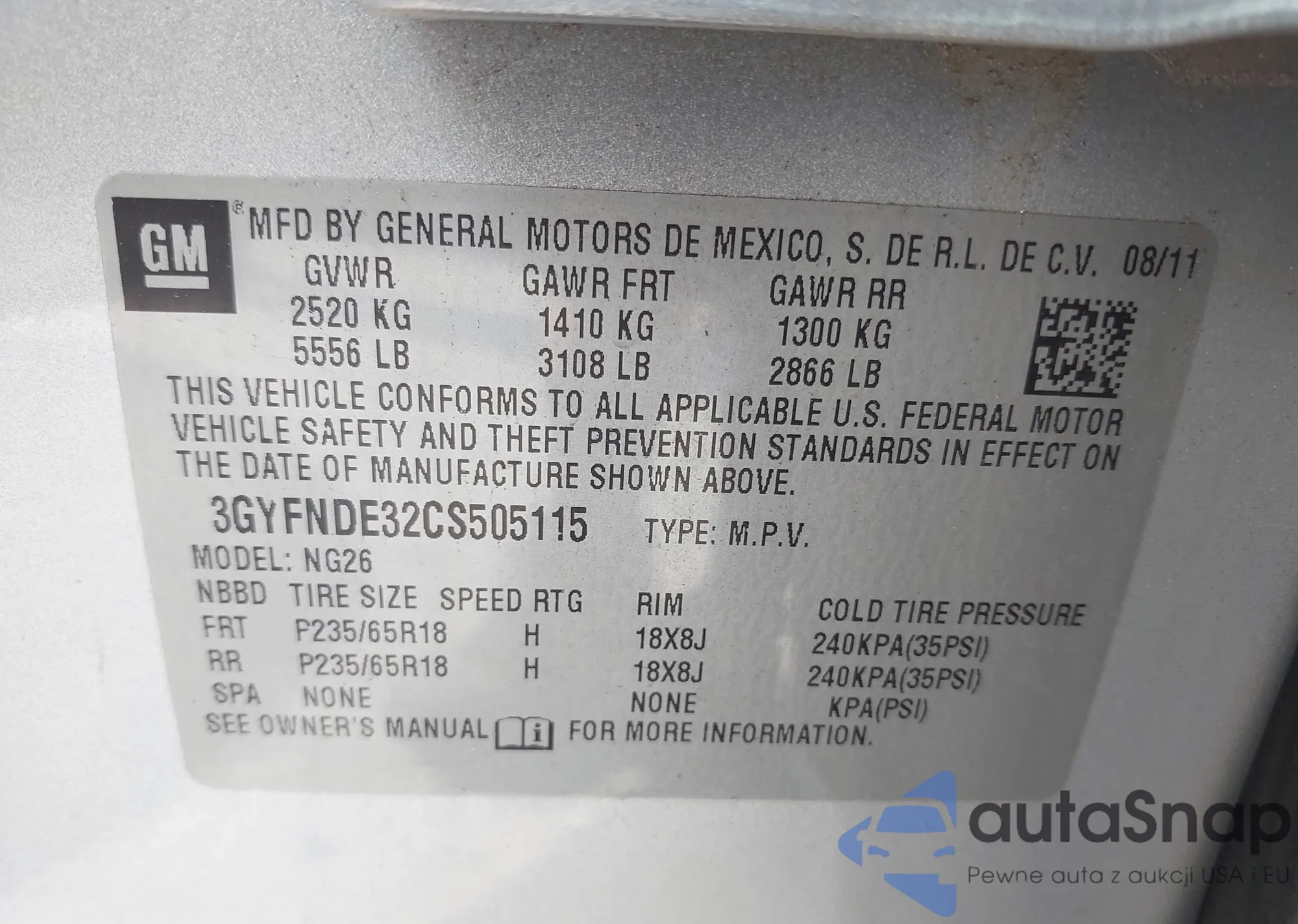 • VIN 3GYFNDE32CS505115