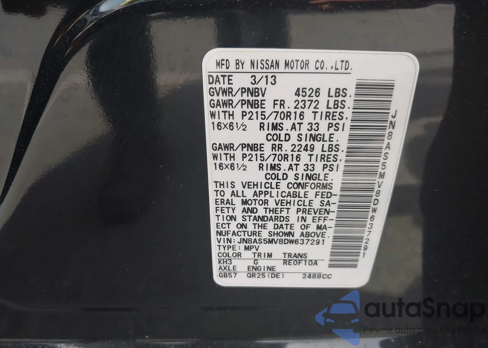 • VIN JN8AS5MV8DW637291