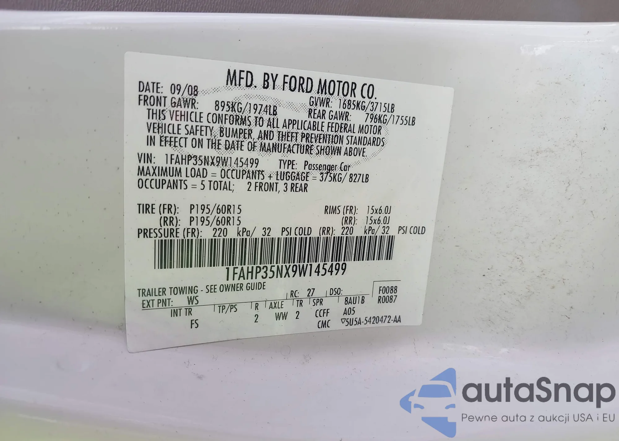 LOT: 42725506 VIN: 1FAHP3H25CL403163
