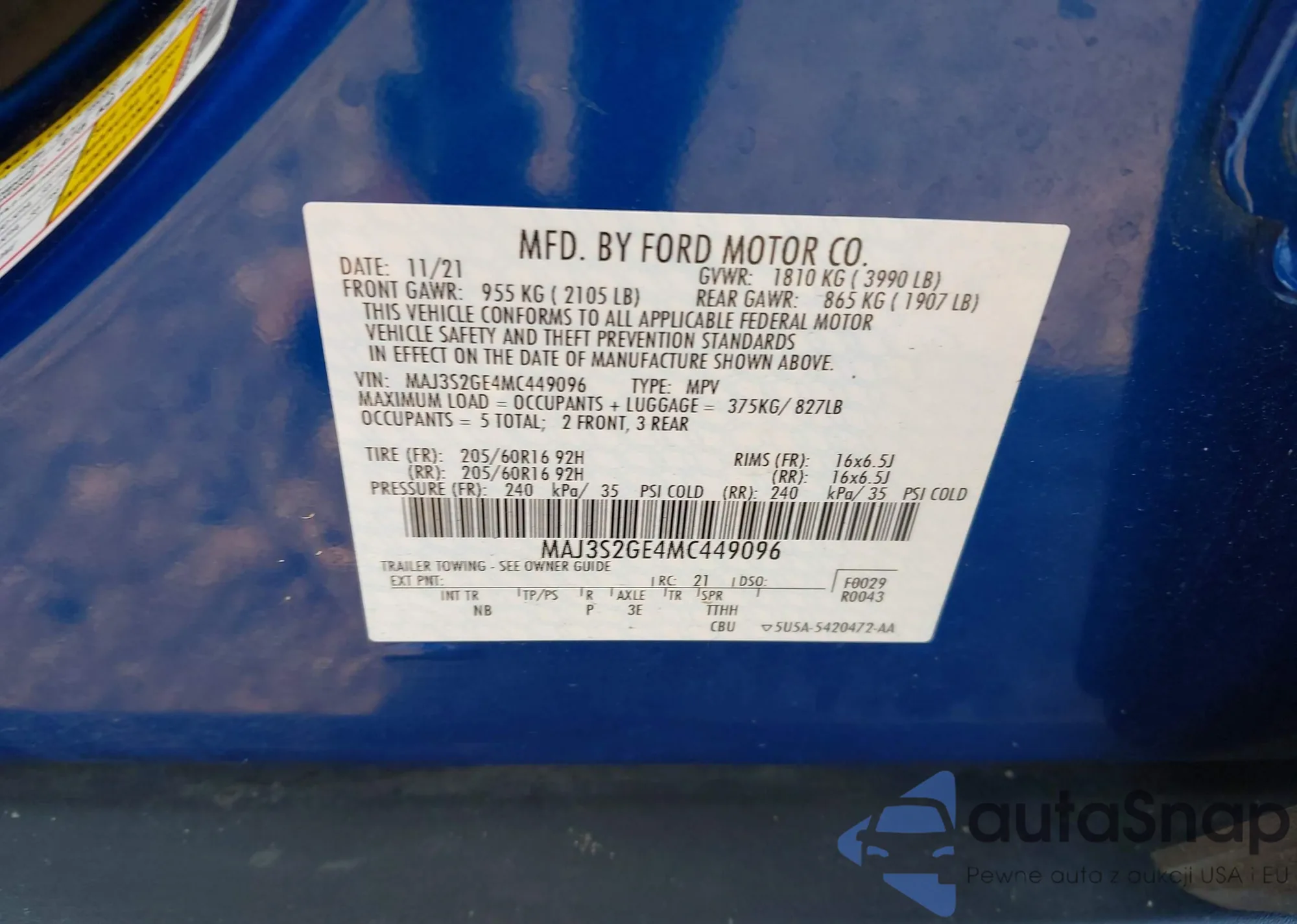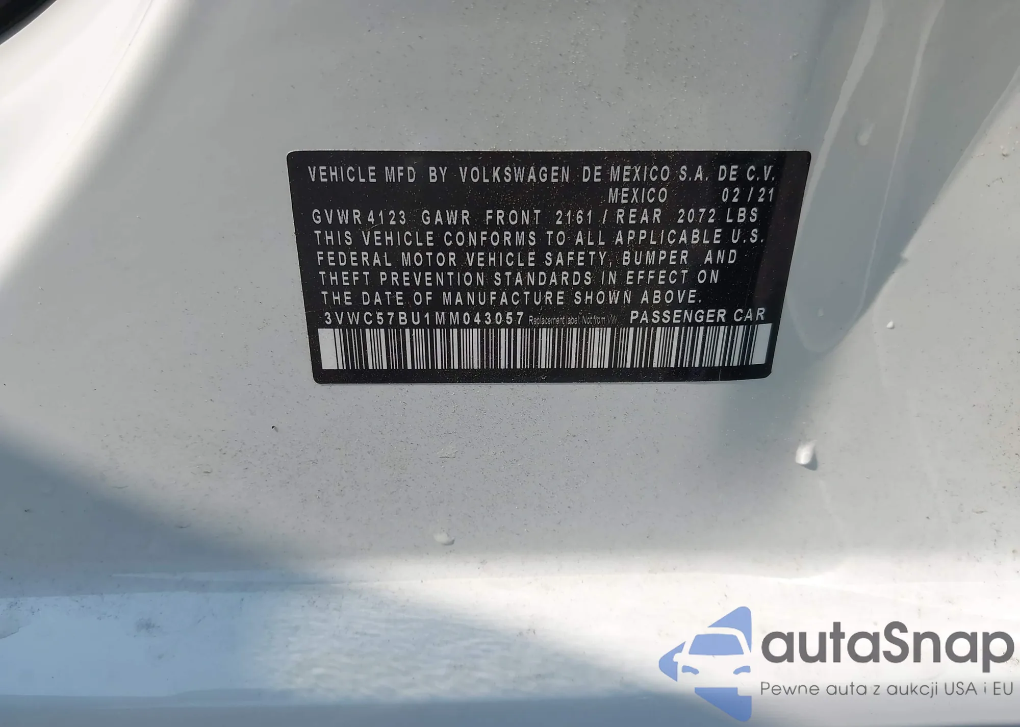 • VIN 3VWC57BU1MM043057