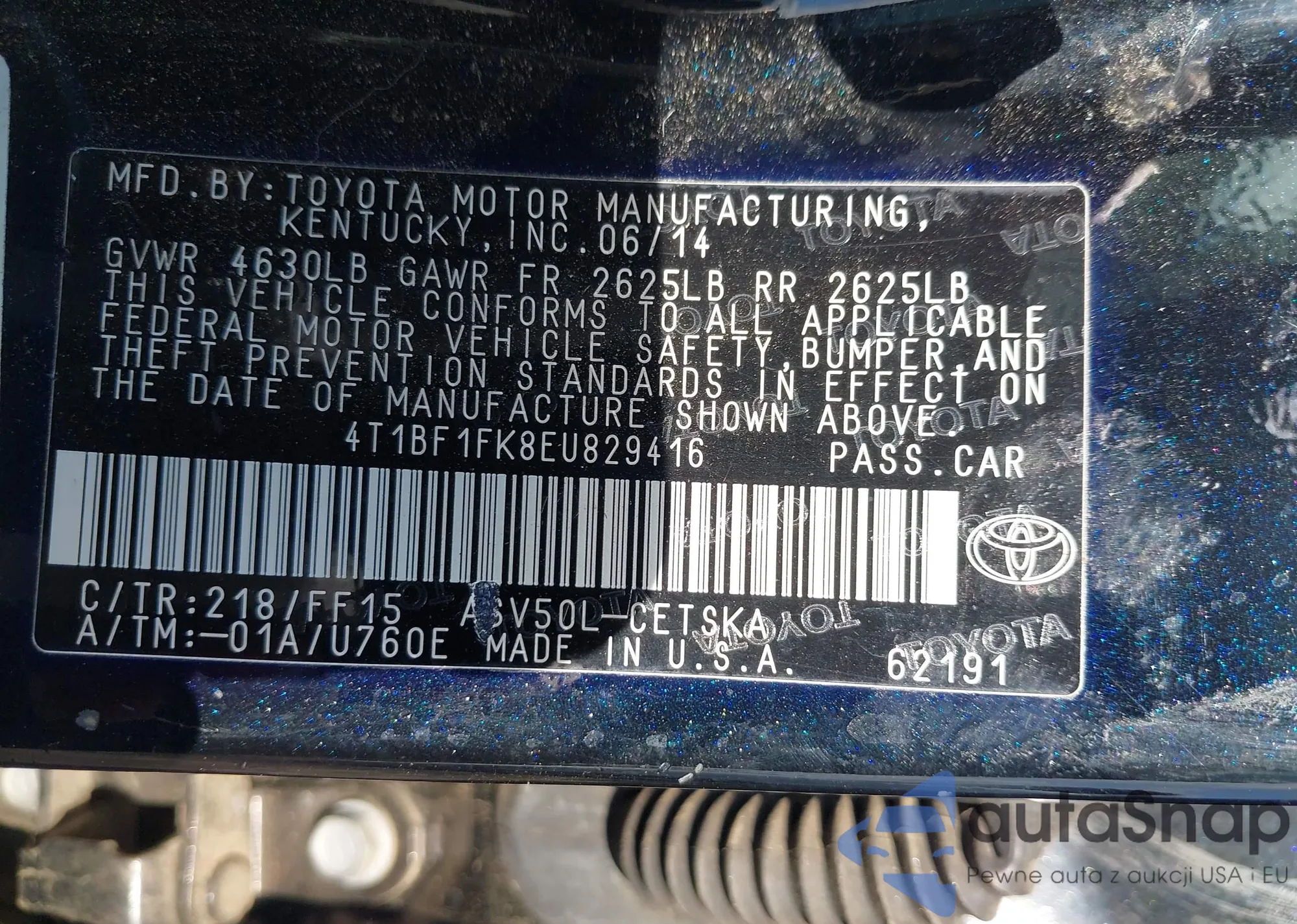 • VIN 4T3ZK3BB1EU066710