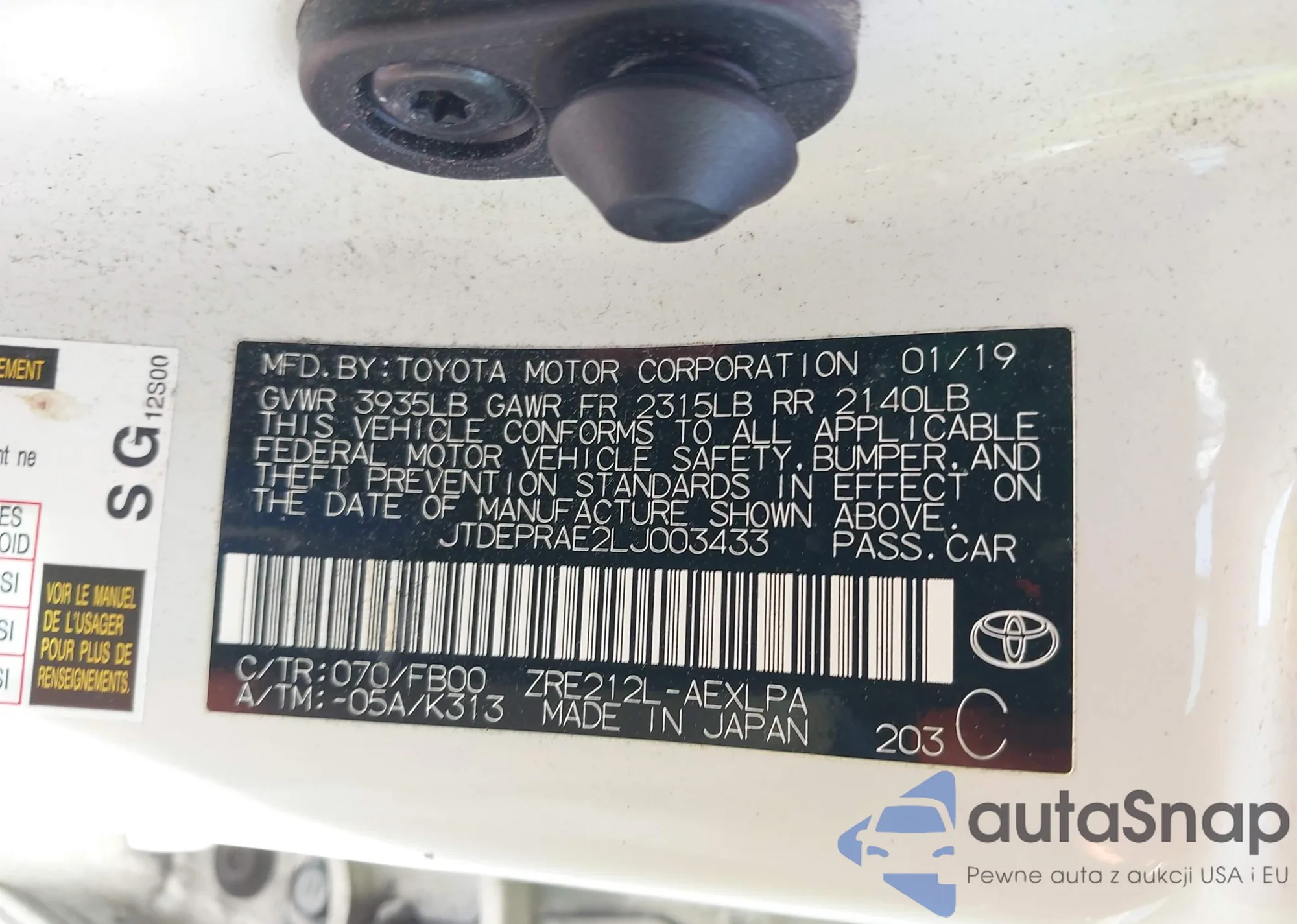 • VIN JTDEPRAE2LJ003433