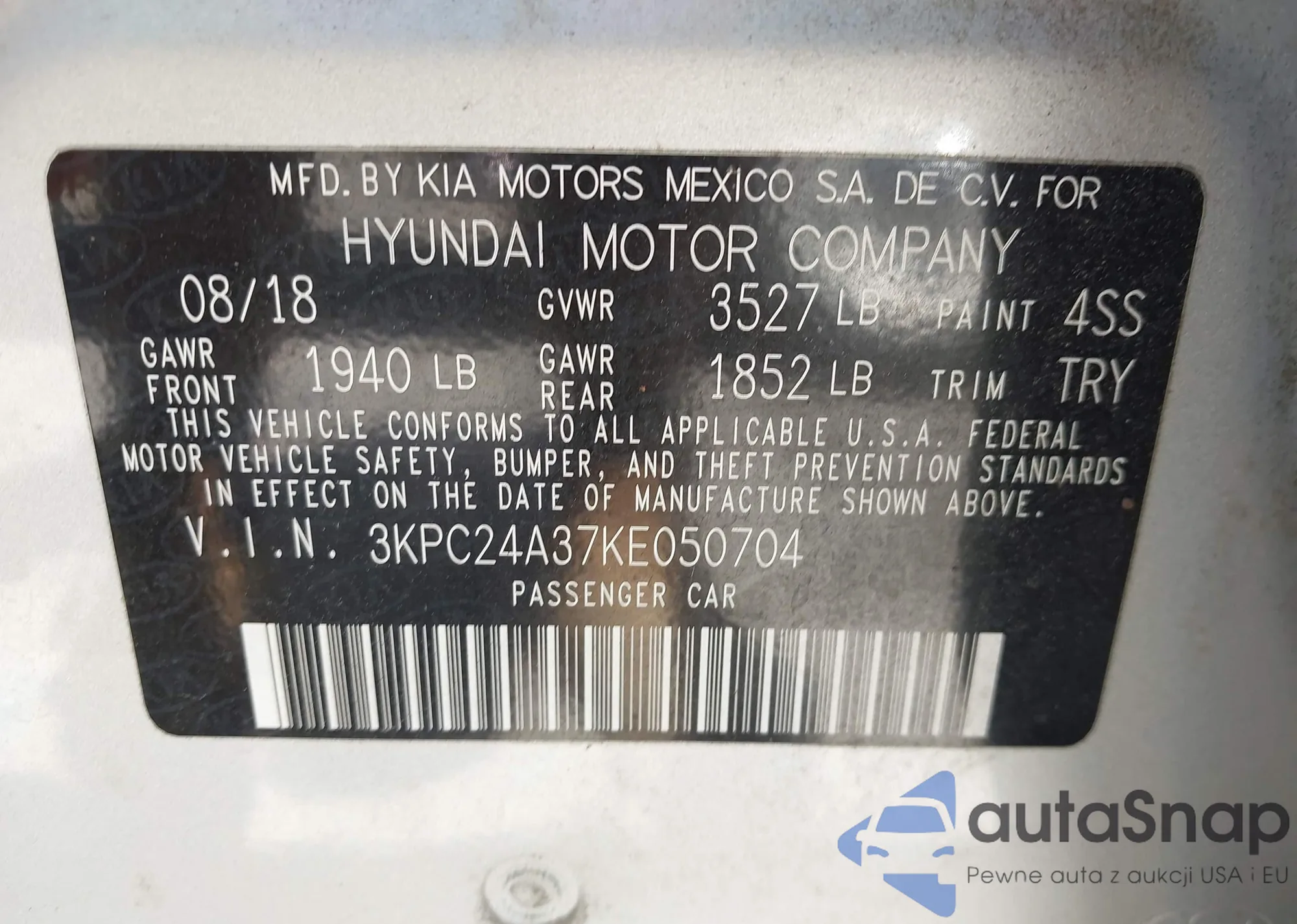• VIN 3KPC24A37KE050704