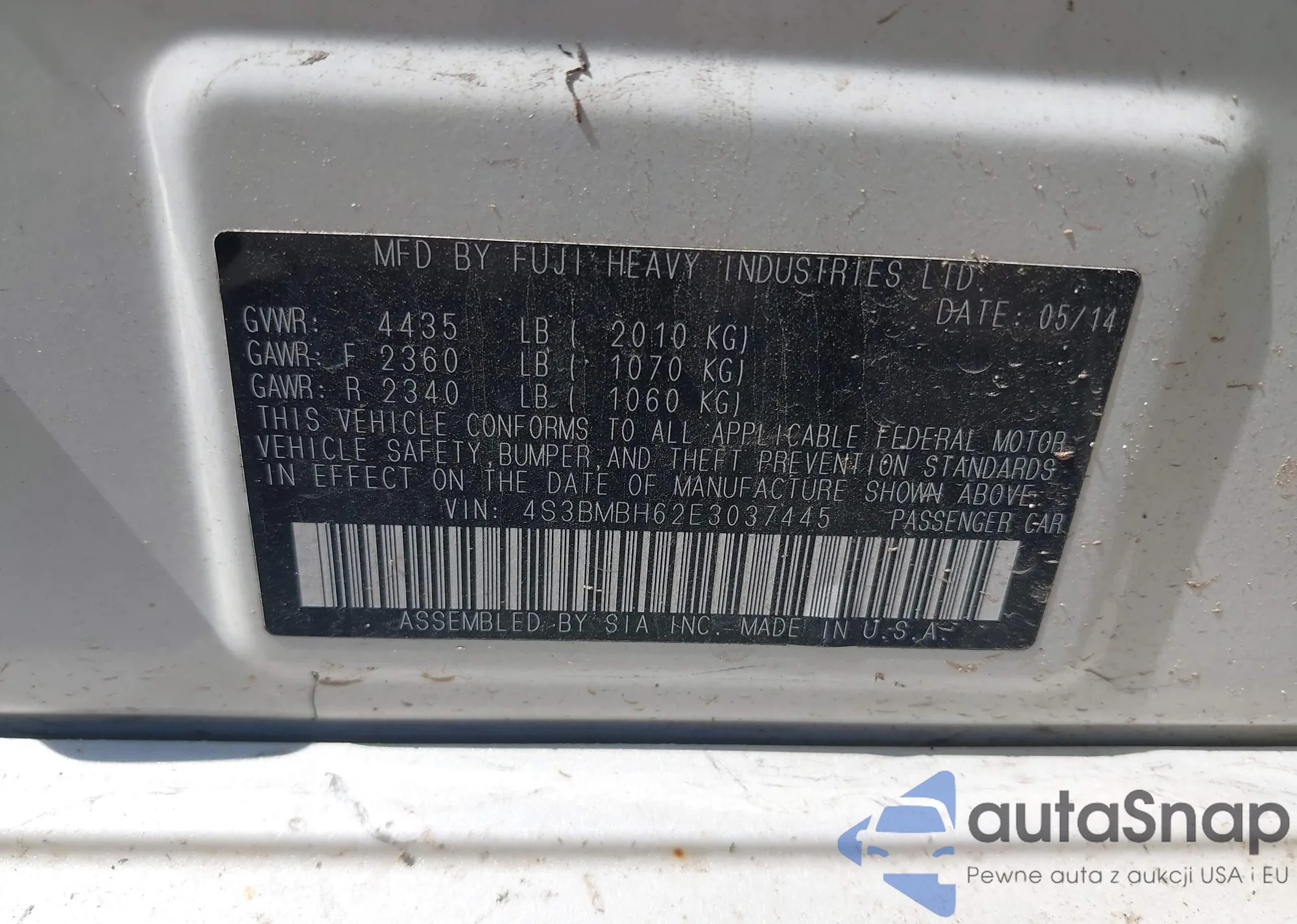 LOT: 42643028 VIN: JF1GH63659G815153