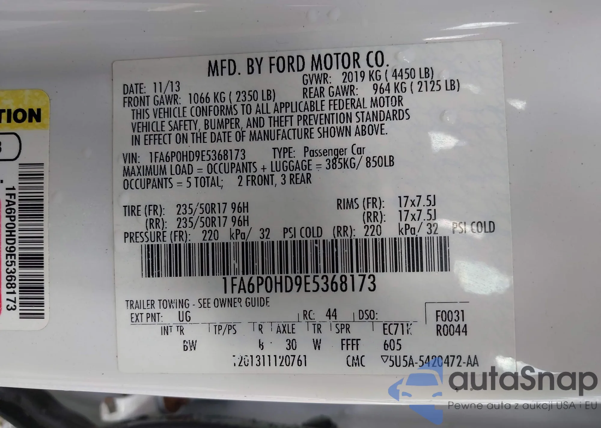• VIN 1N4BL3AP5EC428462