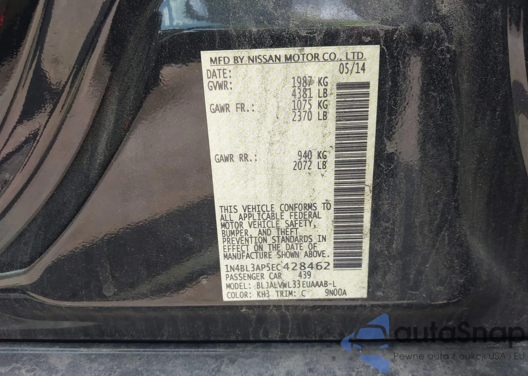 LOT: 42459488 VIN: 1N4BL3AP5EC428462